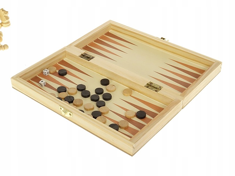 Повністю виготовлений набір ігор з дерева в елегантній та зручній для транспортування упаковці Додатковою перевагою гри є двостороння дерев'яна магнітна дошка.