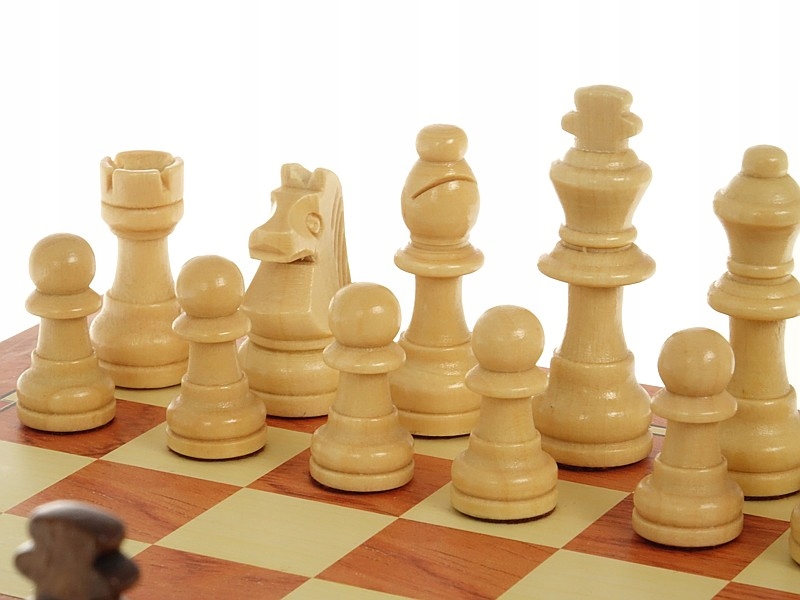 - 32 дерев'яні магнітні фігури (двох кольорів) з повстяним блоком для гри в шахи або шашки.
