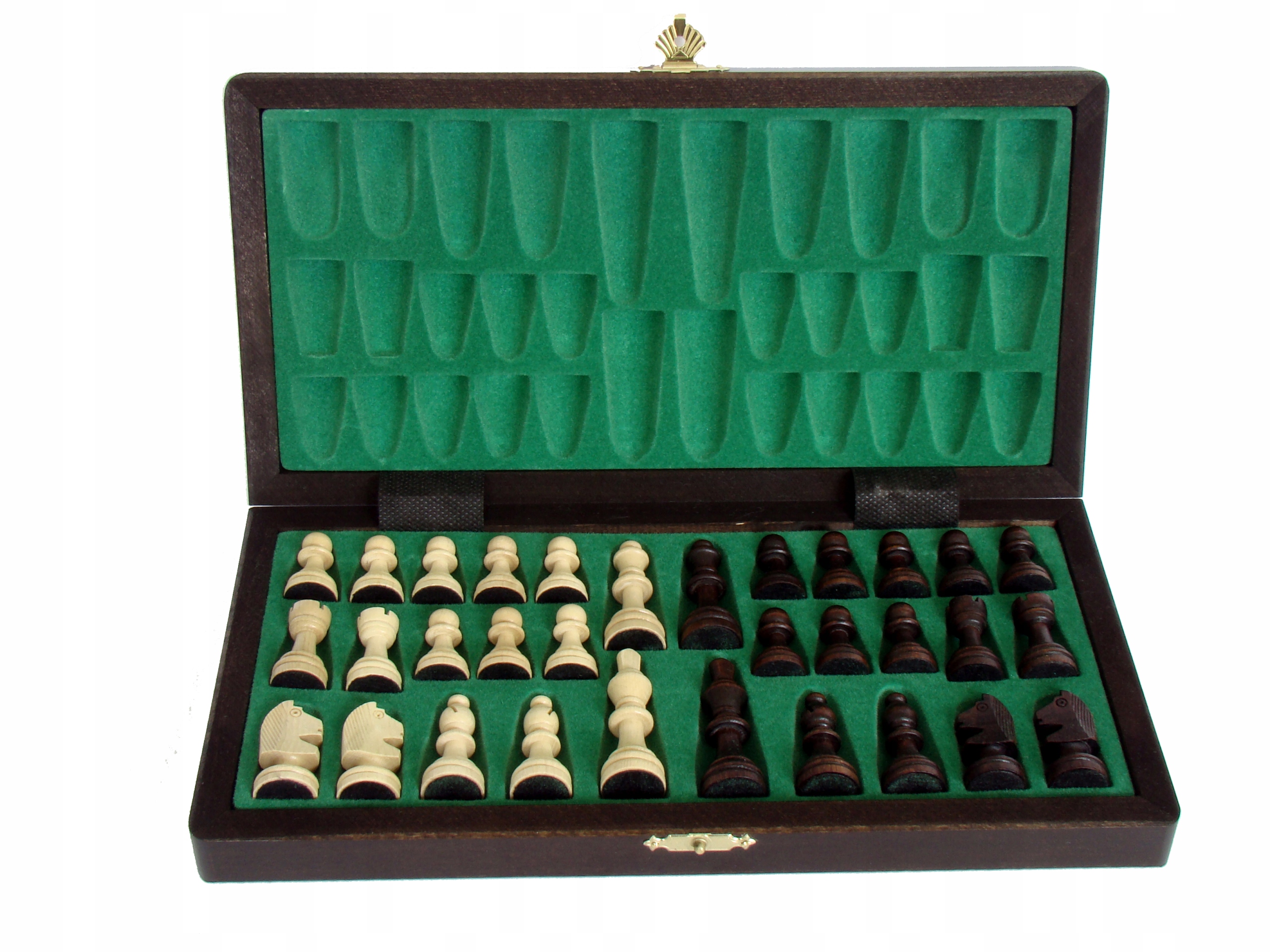 Усередині касети шахові фігури розташовані в спеціально сформованій вставці, яка надає їм елегантності та запобігає переміщенню фігур.