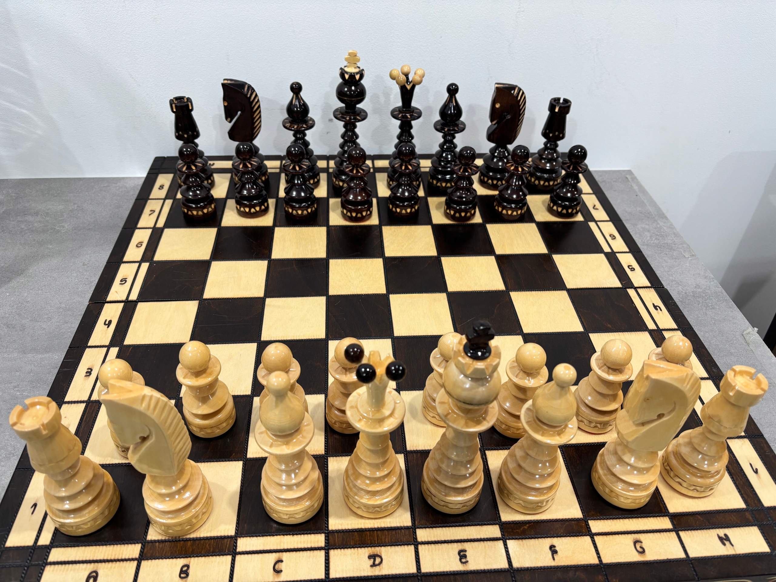- Шахову дошку, виготовлену вручну з дерева Sycamore