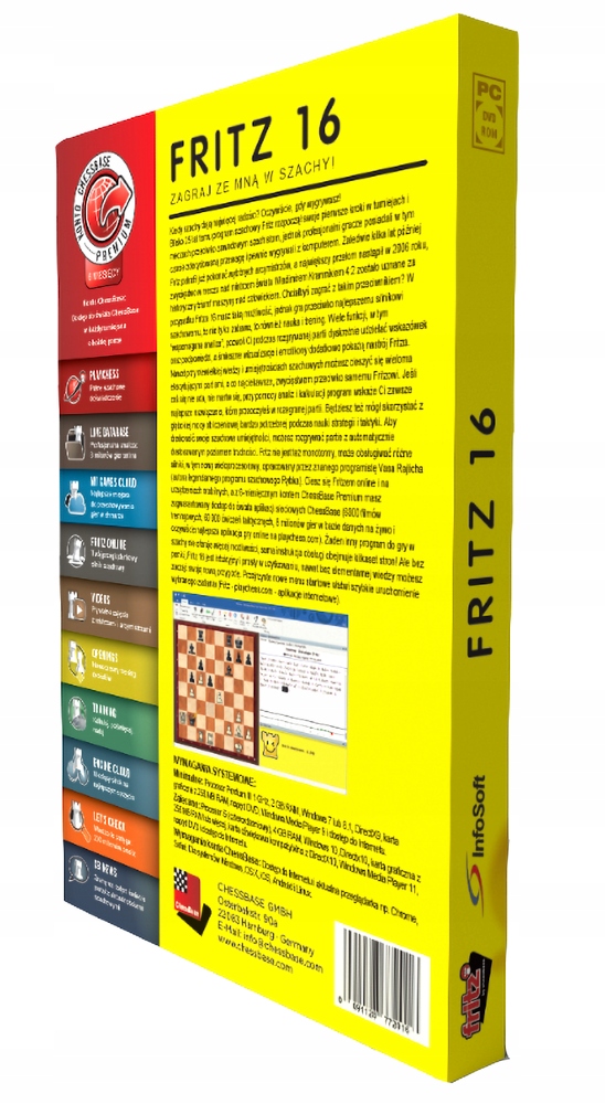 Якщо ви хочете зіткнутися з суперником із дуже вдосконаленим штучним інтелектом або взяти участь у чемпіонаті з живими суперниками, замовте FRITZ 16 PL сьогодні та насолоджуйтесь можливостями, які пропонує найкраща шахова гра на ринку!