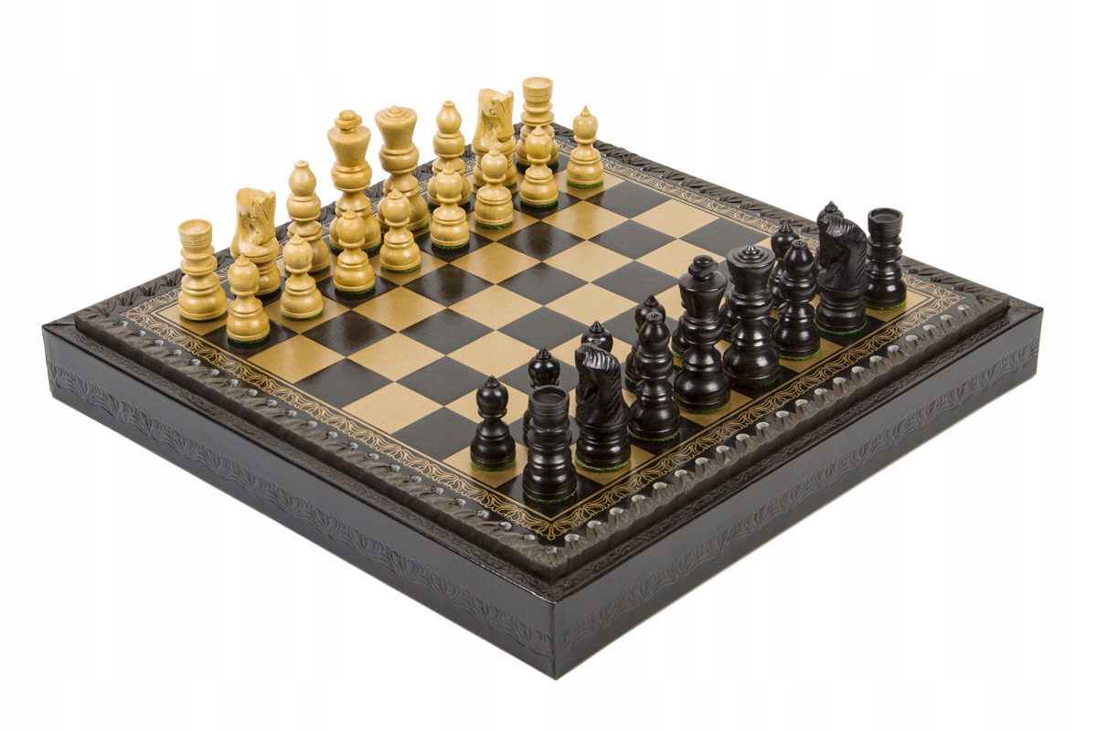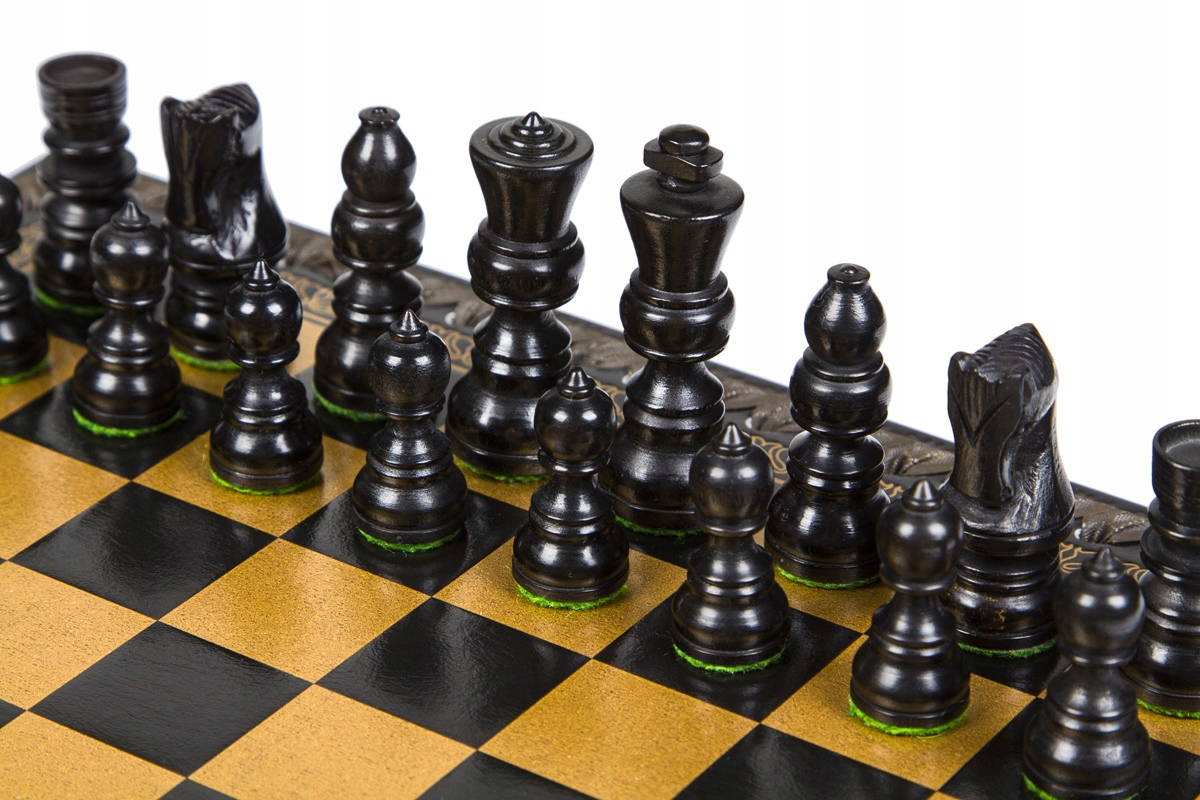 Шахові фігури Palisandro Dorato 6 см + шахова дошка з еко -лівовим золотом/чорним кольором