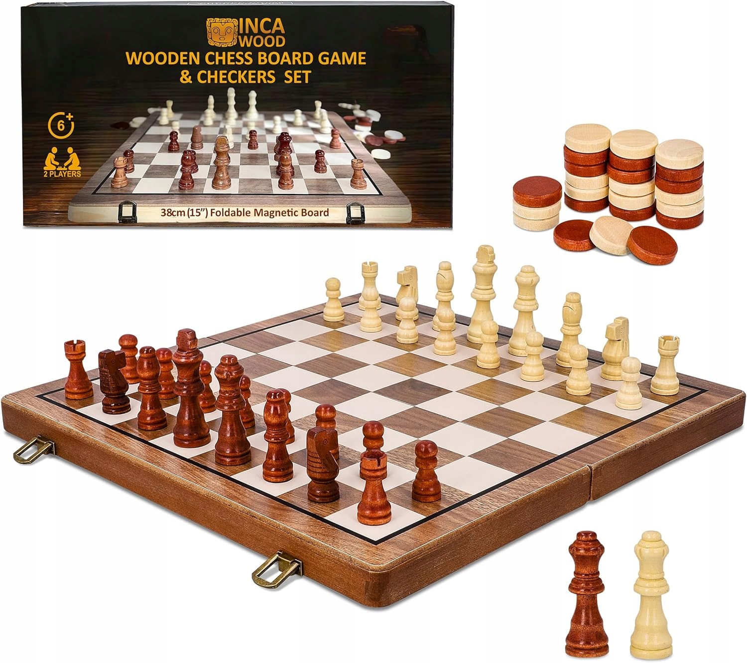 Шаховий набір, магнітний дерев'яний шахівниця , ручна робота - красивий і портативний дорожній шаховий набір для дорослих і дітей, розмір 39 х 39 см.