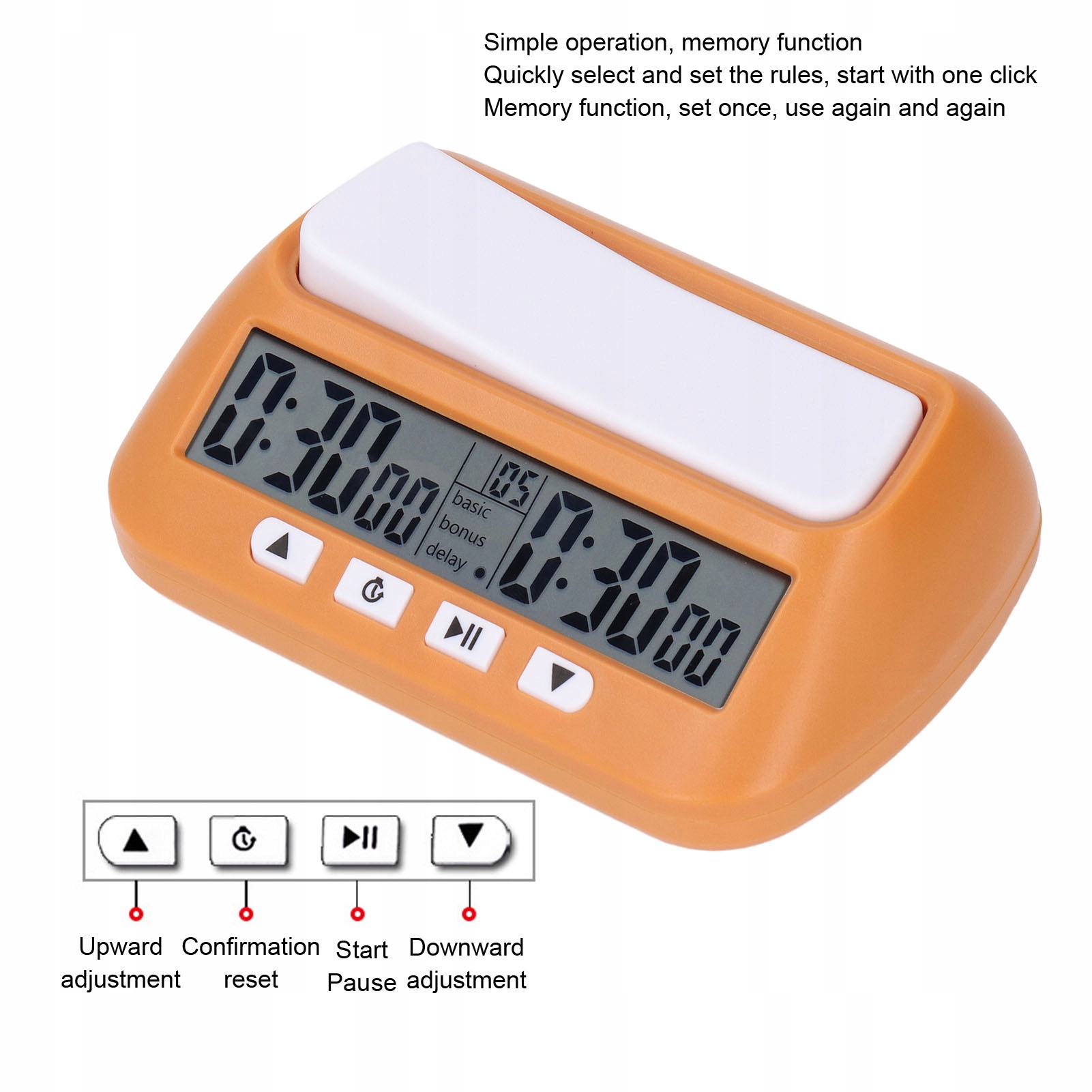 3. Чіткий дисплей: шаховий таймер оснащений професійним цифровим дисплеєм, який забезпечує читання в будь-який час. Чіткий дисплей надає гравцям швидкий і простий спосіб відстежувати час і приймати зважені рішення під час гри, що забезпечує більшу точність.