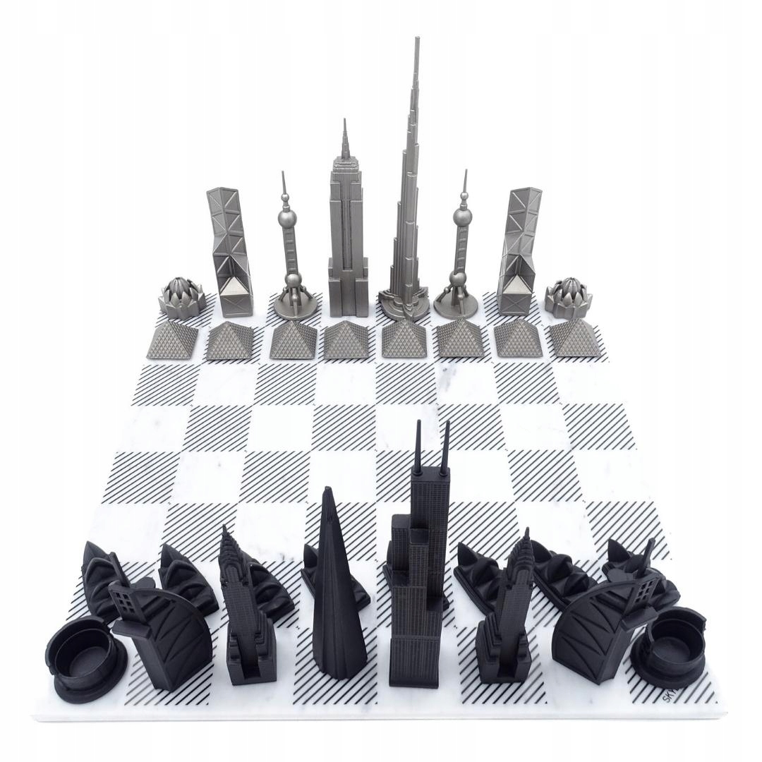 Ексклюзивний шаховий набір Skyline World Icons — продукт, який обов’язково сподобається всім любителям цієї стратегічної гри та ексклюзивних прикрас. Виготовлені з нержавіючої сталі найвищої якості, шахові фігури представляють найвідоміші будівлі у світі, такі як Емпайр-Стейт-Білдінг, Бурдж-Халіфа, Піраміда Лувру та Sears Tower у Чикаго. Все це доповнюється красивою мармуровою шахівницею, яка ідеально поєднується з дизайнерським стилем фігур. Шахи World Icons додадуть елегантності будь-якому приміщенню і стануть унікальним елементом декорувітальні або офісу. Шахи Skyline неодмінно сподобаються любителям унікального дизайну, які будуть зачаровані деталями набору та його незвичайною формою.