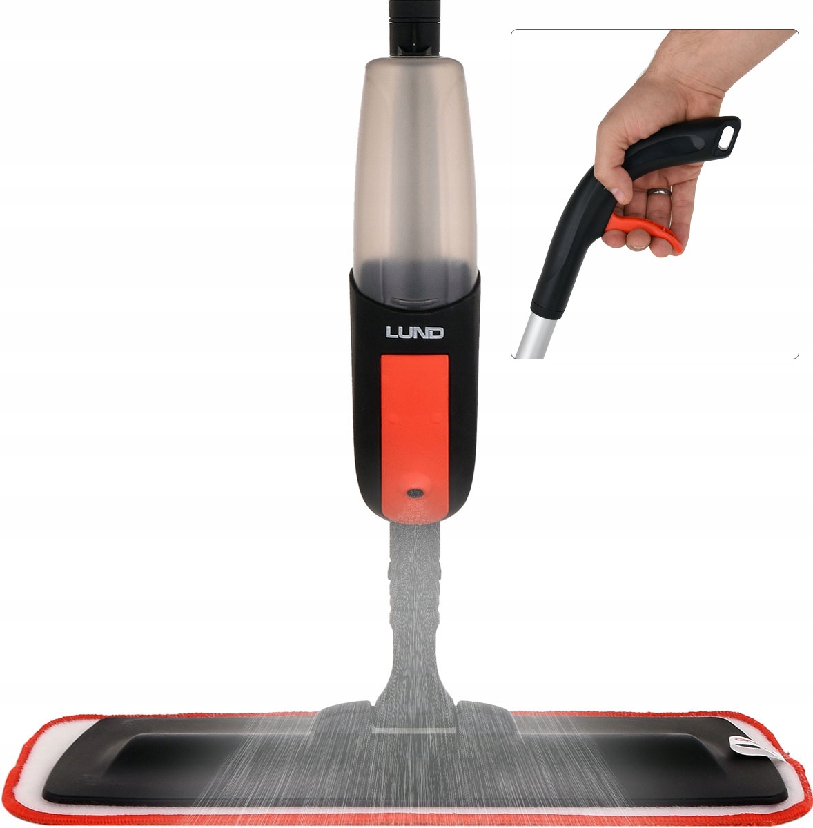 Швабра з розпилювачем і покриттям з мікрофібри. Завдяки місткому резервуару, розміщеному на швабрі, ми можемо дозувати рідину під час роботи. Щоб запустити душ, просто натисніть кнопку, розташовану на ручці.