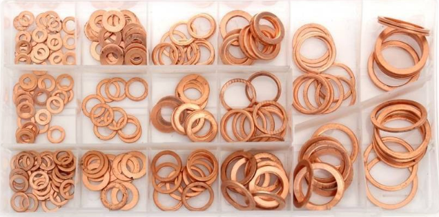 ШАЙБИ МІДНІ, УПЛОТНЕННЯ, 16x РІЗНИХ РОЗМІРІВ, НАБІР ШАЙБ, 220 ШТ.