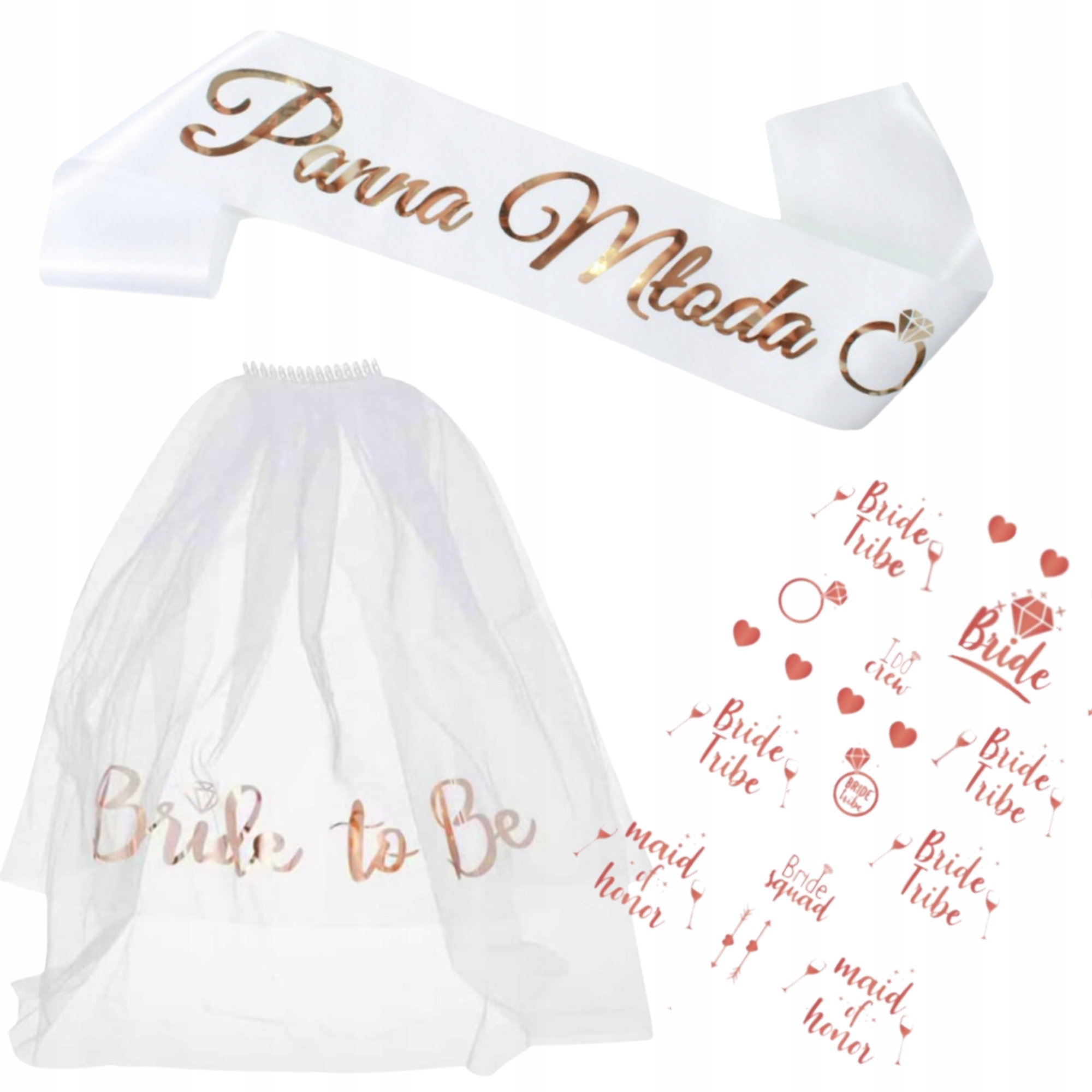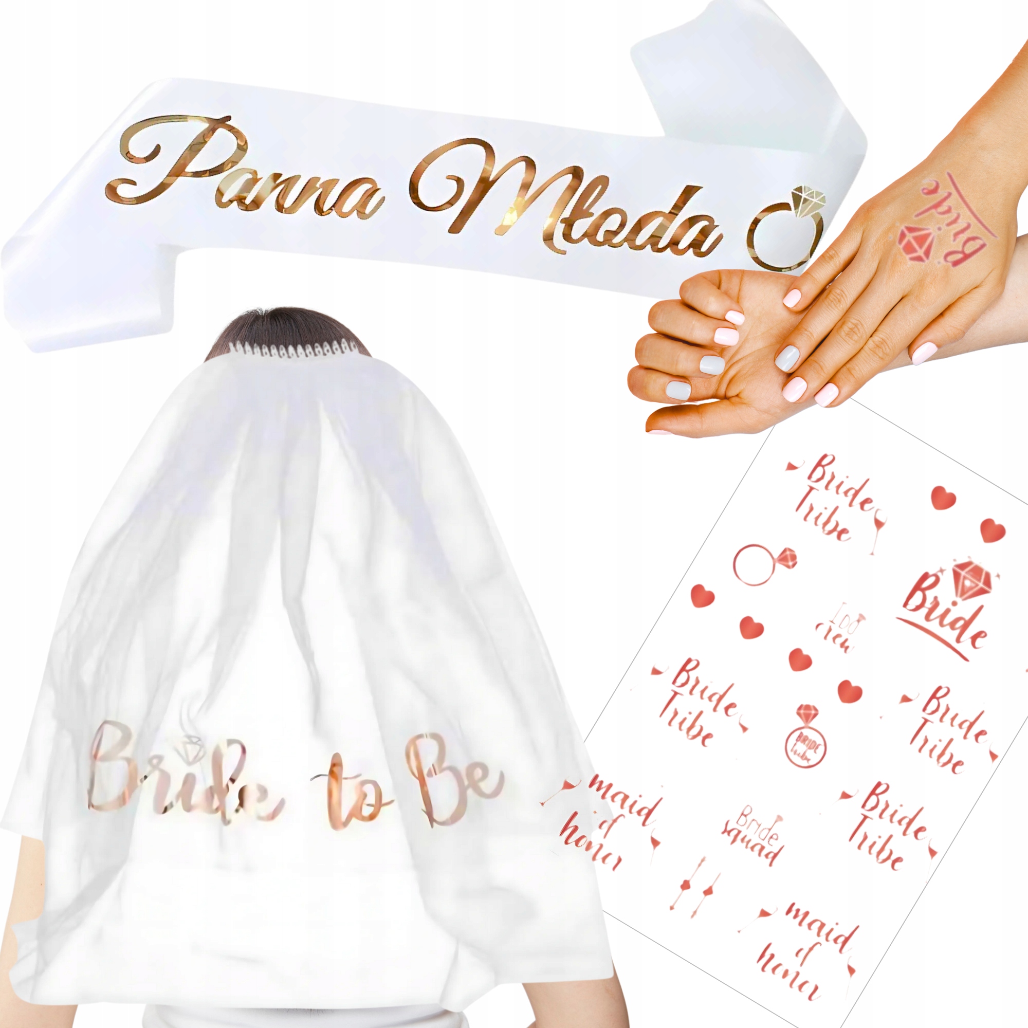 Набір складається з білої кришки з нареченою на напис, вуальною смугою з нареченою на напис і набір татуювань, що миються. Це чудово на бакалаврі. Майбутня наречена зможе відчути особливу подяку такому набору. Крім того, набір може створити сувенір з цієї унікальної події. З іншого боку, татуювання зроблять вечірку приємнішою, кожен учасник .