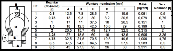 Кована, кругла сталева скоба (omega) з гвинтовим штифтом з вушком і коміром - тип W, призначена для підйому вантажів (предметів, матеріалів і вантажів), а також для строп із сталевих канатів і фіброволоконних строп.