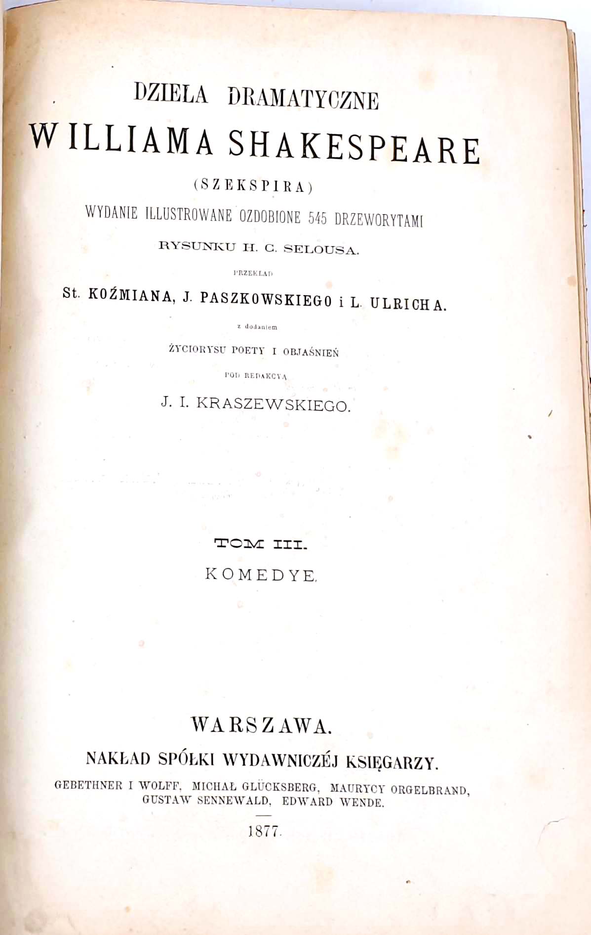SHAKESPEARE- DZIEŁA DRAMATYCZNE SZEKSPIRA t.I-III wyd. 1875-7 drzeworyty