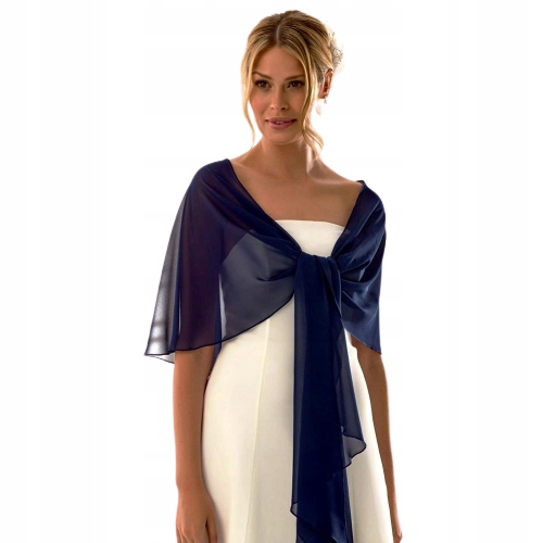 ШАЛЬ НА ПЛЕЧІ, ВЕЧІРНЯ СУКТЯ - ТЕМНО-СИНИЙ ШИФОН