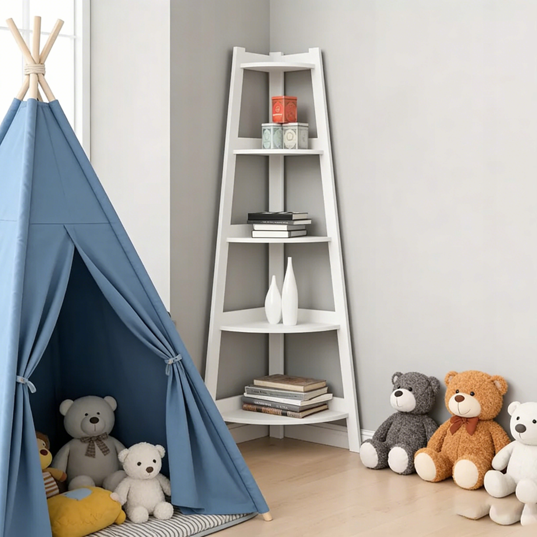 Кутовий дизайн: трикутна основна конструкція в поєднанні з віялоподібними полицями ідеально вписується в прямокутні кути вашого дому. Це дозволяє максимально використати кутовий простір, який інакше залишився б невикористаним, не займаючи площі підлоги та не порушуючи загального планування кімнати. Легко адаптується до компактних квартир, невеликих будинків або кутів будь-якої кімнати, оптимізуючи використання простору.