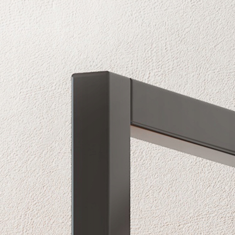 Полиця має міцну структуру, яка забезпечує стабільність і довговічність. Чорна рама з металу надає йому сучасний вигляд. Полиці розподілені рівномірно, що дозволяє ефективно використовувати простір.