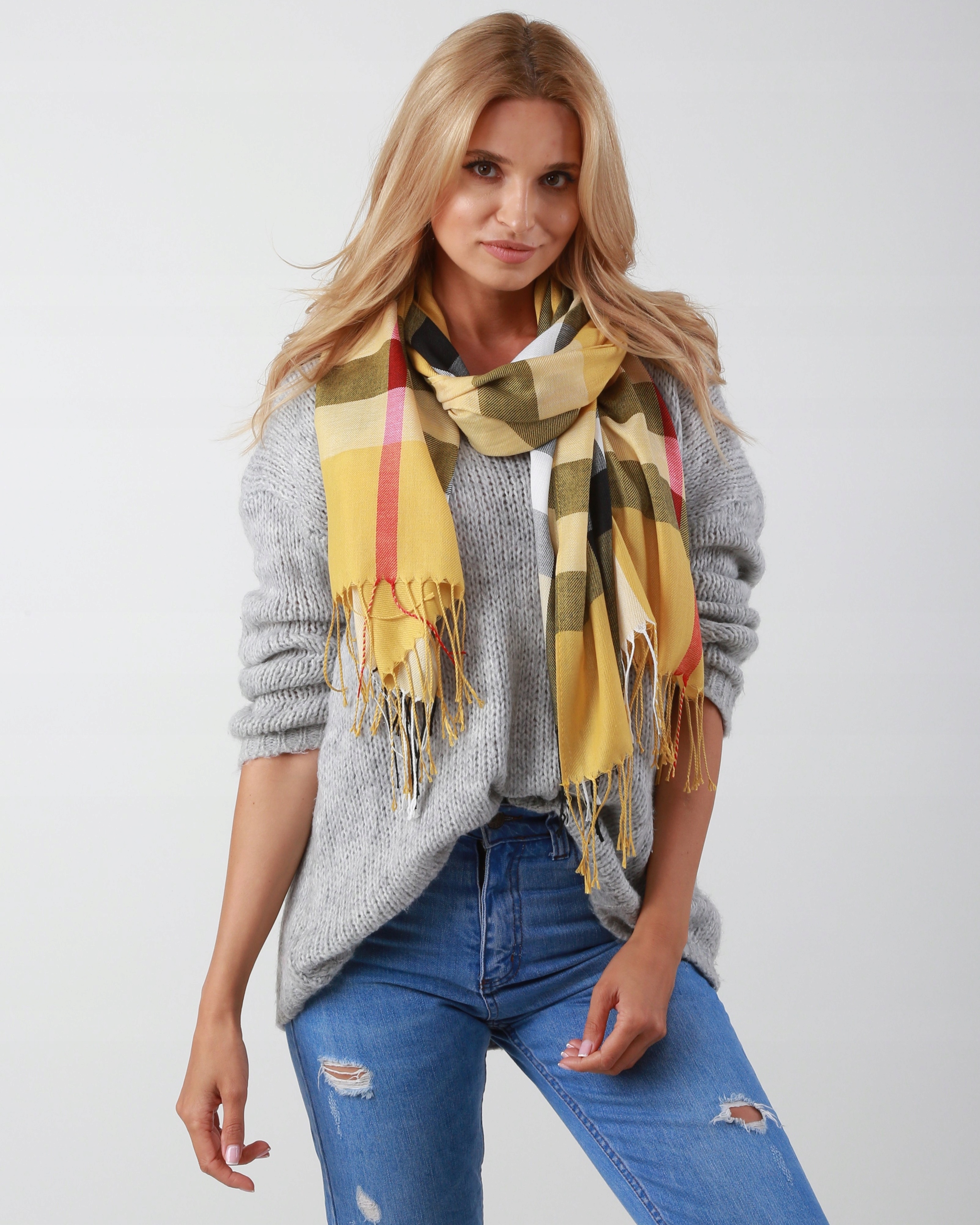 - Великий МОДНИЙ шарф з бахромою, полотняне плетіння.