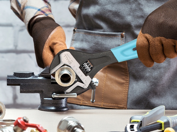 【Гнучка черв’ячна передача】. Черв’ячна передача гайкового ключа має нековзку рифлену конструкцію для плавного регулювання, що дозволяє швидко регулювати губки, не застрягаючи та не травмуючи руку. Більш точні канавки з меншими зазорами забезпечують точний крок після регулювання.