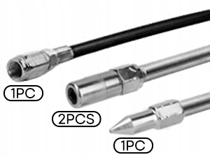Повний набір мастильного пістолета: включає один невеликий набір мастильного пістолета (ємністю 99 г, 3000 PSI), 1 шт. довгої подовжувальної трубки, 1 шт. короткої подовжувальної трубки, 1 шт. 12-дюймового гнучкого пружинного шланга, 2 шт. 4 з’єднувачів, 1 шт. гострого сопла , 1 подовжувач адаптера, 3 унції мастила для картриджів, пара армованих ПВХ рукавичок і 1 засіб для чищення фітингів Zerk