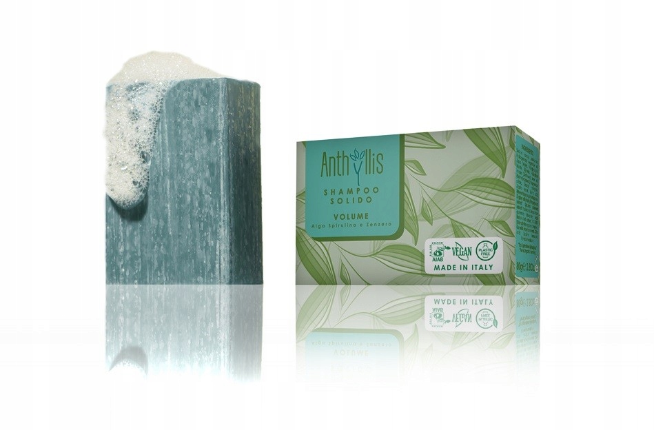 Шампунь батончик, що збільшує об'єм, з екстрактом імбиру та спіруліни, AIAB, 80 г, Anthyllis