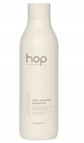 Montibello HOP Full Volume Shampoo був розроблений для додання об’єму всім типам волосся. Завдяки унікальній формулі забезпечує миттєве підтяжку біля коріння, зміцнює волокно волосся та збільшує його густоту. Результат — більш густе, легке волосся без ефекту обважнення. Продукт має веганську формулу.