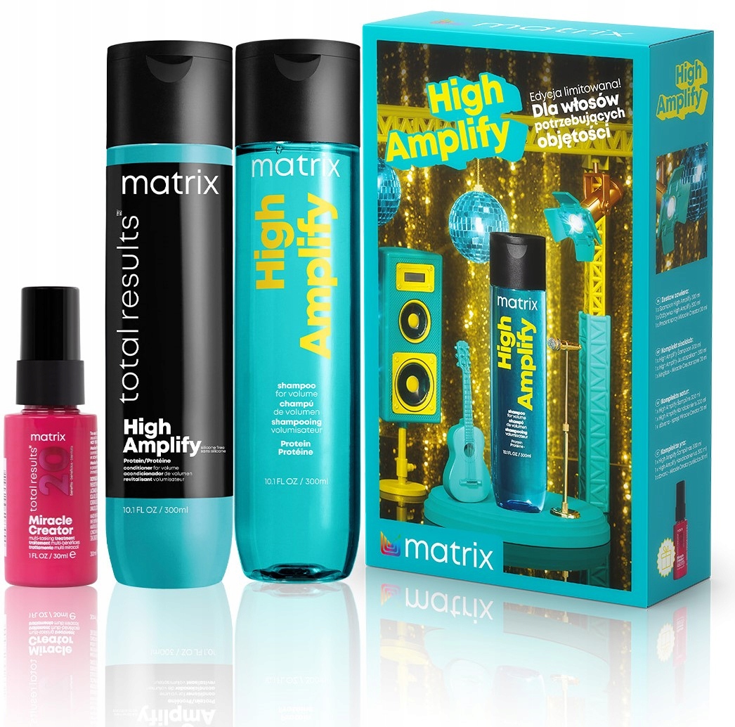 Подарунковий набір Matrix High Amplify у красивій подарунковій коробці — ідеальний подарунок для кожної жінки для щоденного догляду за волоссям. Надає волоссю феноменальний об'єм від коренів і фіксує зачіску.