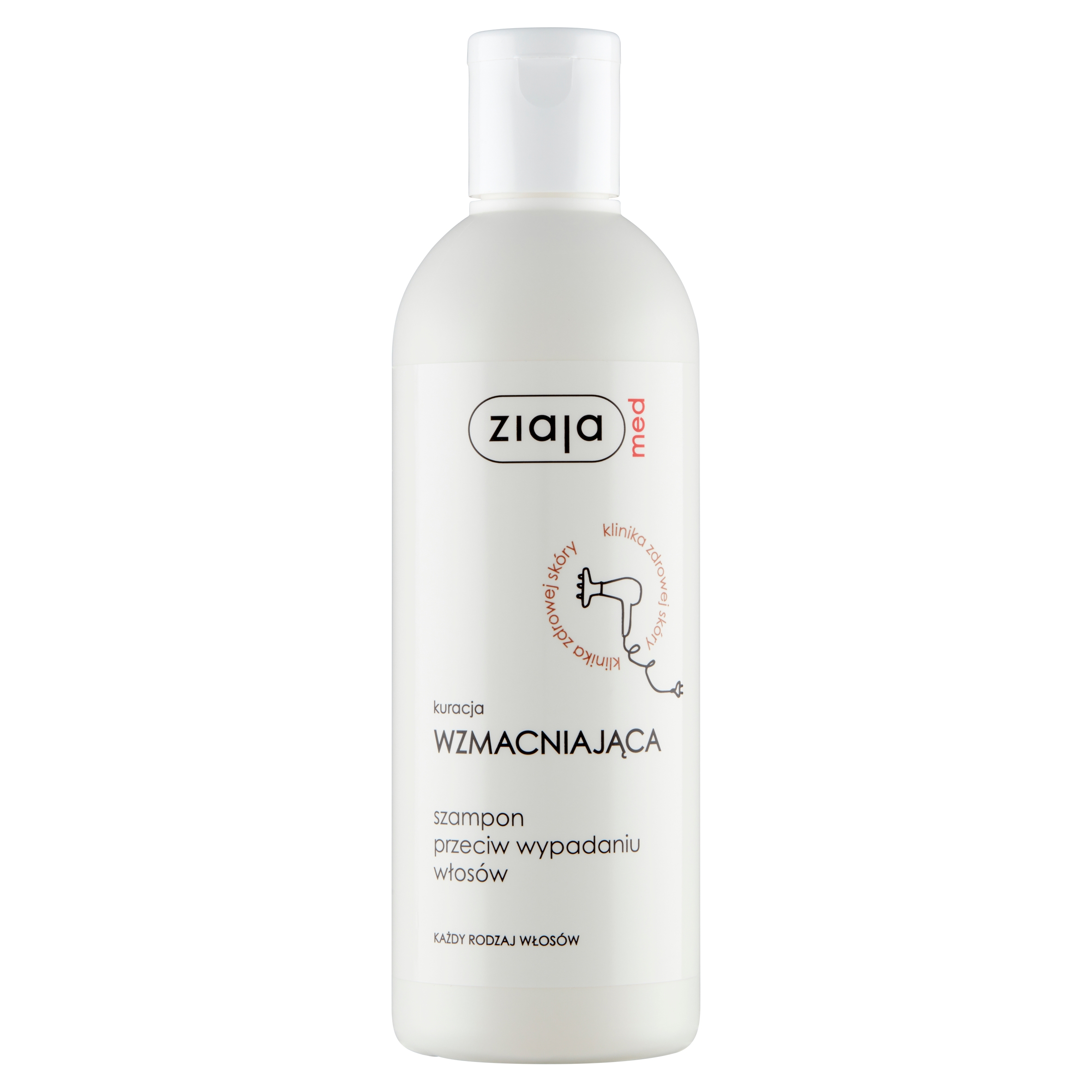 Ziaja Med, зміцнення лікування - це спеціалізований шампунь, розроблений для надмірно падіння волосся, а також проблем, таких як: себорічний дерматит, лупи та гормональна економіка. Косметика була створена на основі білих білків люпіну, які ефективно запобігають випадання волосся.