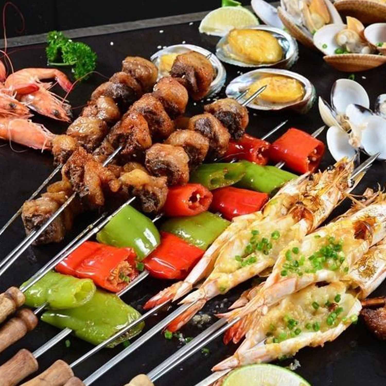- Матеріал: шампури для гриля виготовлені з високоякісної нержавіючої сталі з гладкою поверхнею, що полегшує надягання та виймання їжі. Не падає під час перевертання. Легко очищається та придатний для багаторазового використання.