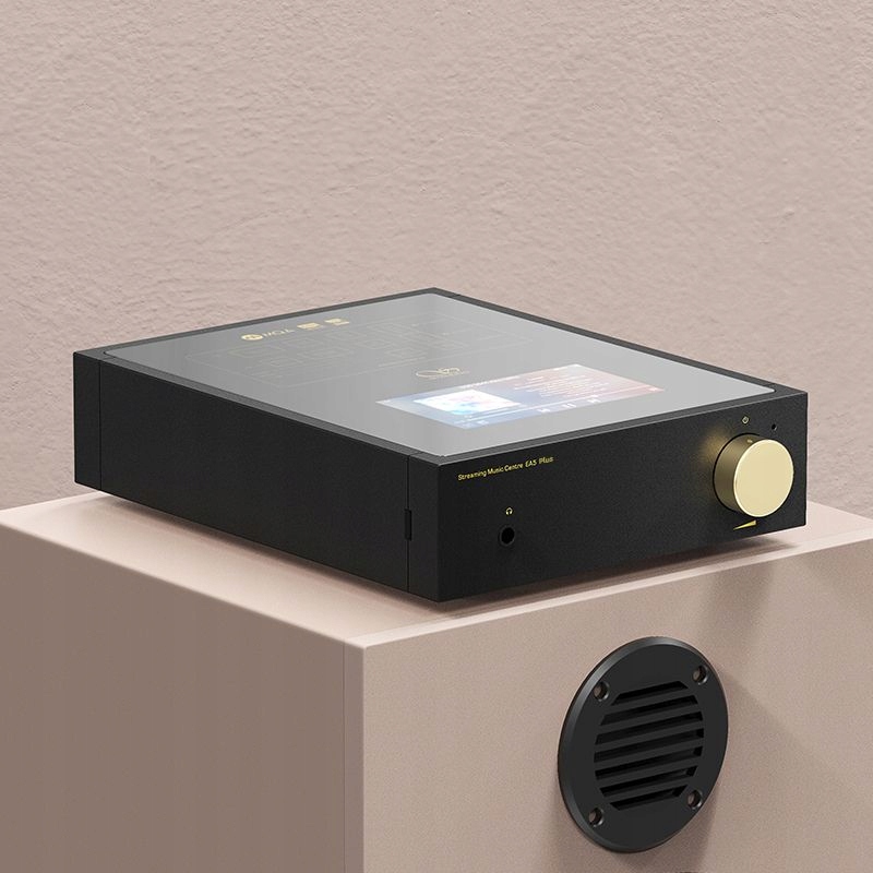 Shanling EA5 Plus має елегантний корпус, завдяки чому він ідеально виглядає на столах або меблях у вітальні як окремий мультимедійний центр. Звертає на себе увагу стильна верхня панель із загартованого скла, на якій розміщено спрощену схему аудіосхеми EA5 Plus і 4,7-дюймовий IPS HD-екран, що дозволяє легко керувати пристроєм. Модель також має красиву золотисту ручку регулювання гучності.