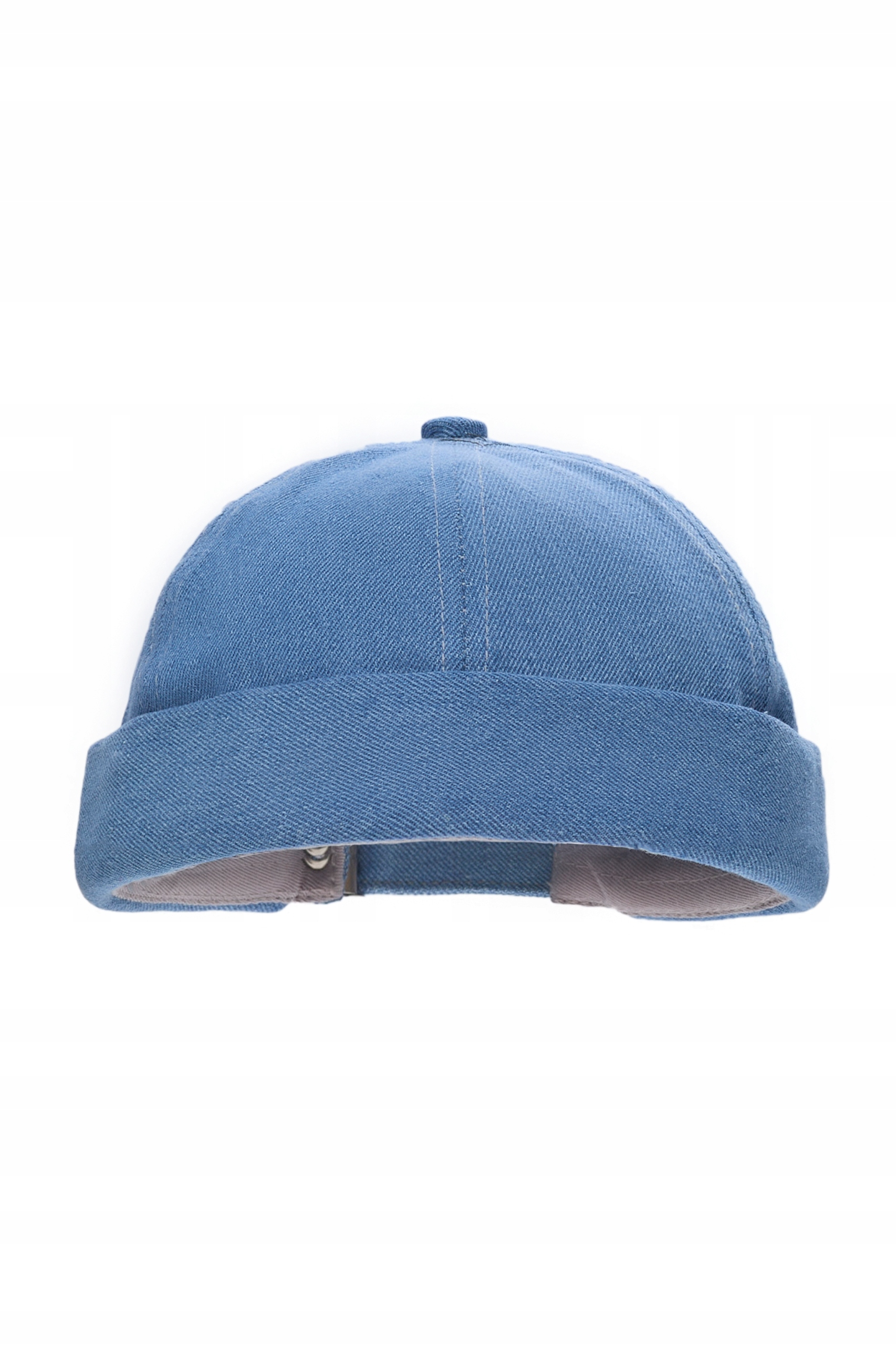 Шапка-докер з щільної джинсової тканини з високою повітропроникністю. Кругла кепка без козирка добре підходить до форми голови. Зручний ремінь з металевою пряжкою ззаду дозволяє регулювати розмір головного убору. Кепка-докер без козирка чудово доповнить повсякденний стиль.