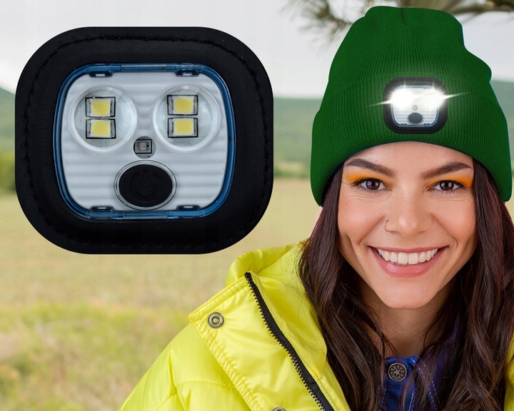 Теплий капелюх із світлодіодним ліхтариком, що світиться у трьох режимах.
