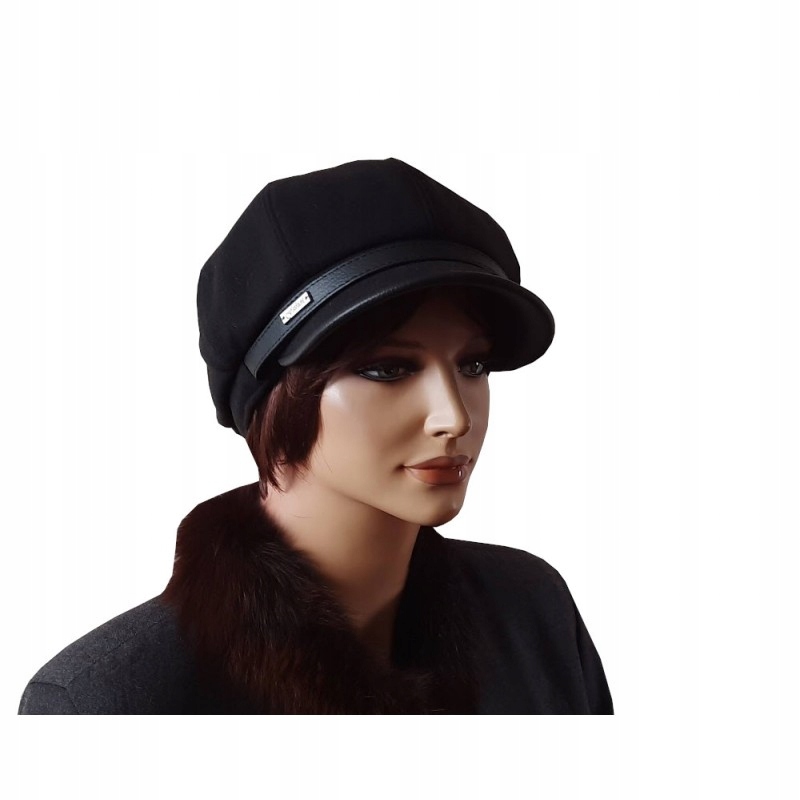 тепла жіноча шапка з дахом. Доступний у чорному. Ідеально підходить для осінньої/ зимової аури. Виготовлений з 50% вовни та 50% поліестеру. Він має пластиковий навіс шириною близько 4,5 см. Підходить 56 см окружності голови. Прикрашений чорним шкіряним ремінцем. 4 Лічильник повинен щільно прилипати до голови. Якщо виходить міра, наприклад, нижче 57,5 см, ми рекомендуємо придбати розмір 57 см. Якщо він виходить вище або рівномірно, напр.