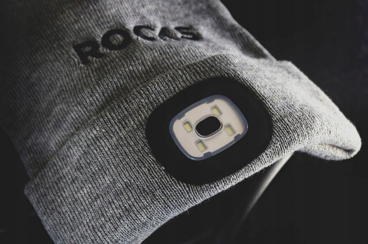 Шапка осінь/зима з ліхтариком USB 80lm сіра ROOKS