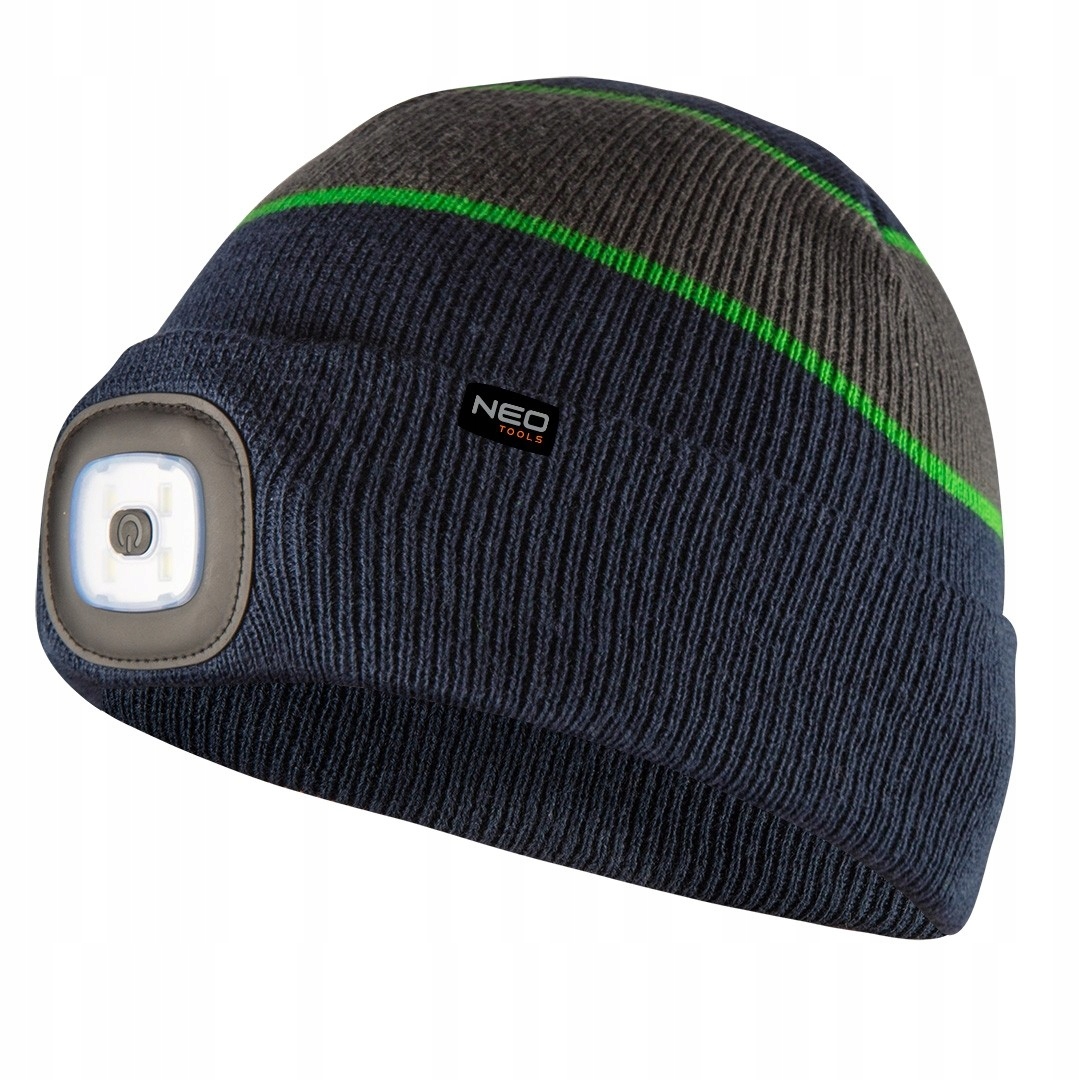 - Кепка з ліхтариком NEO забезпечує світло під час роботи, залишаючи руки вільними.