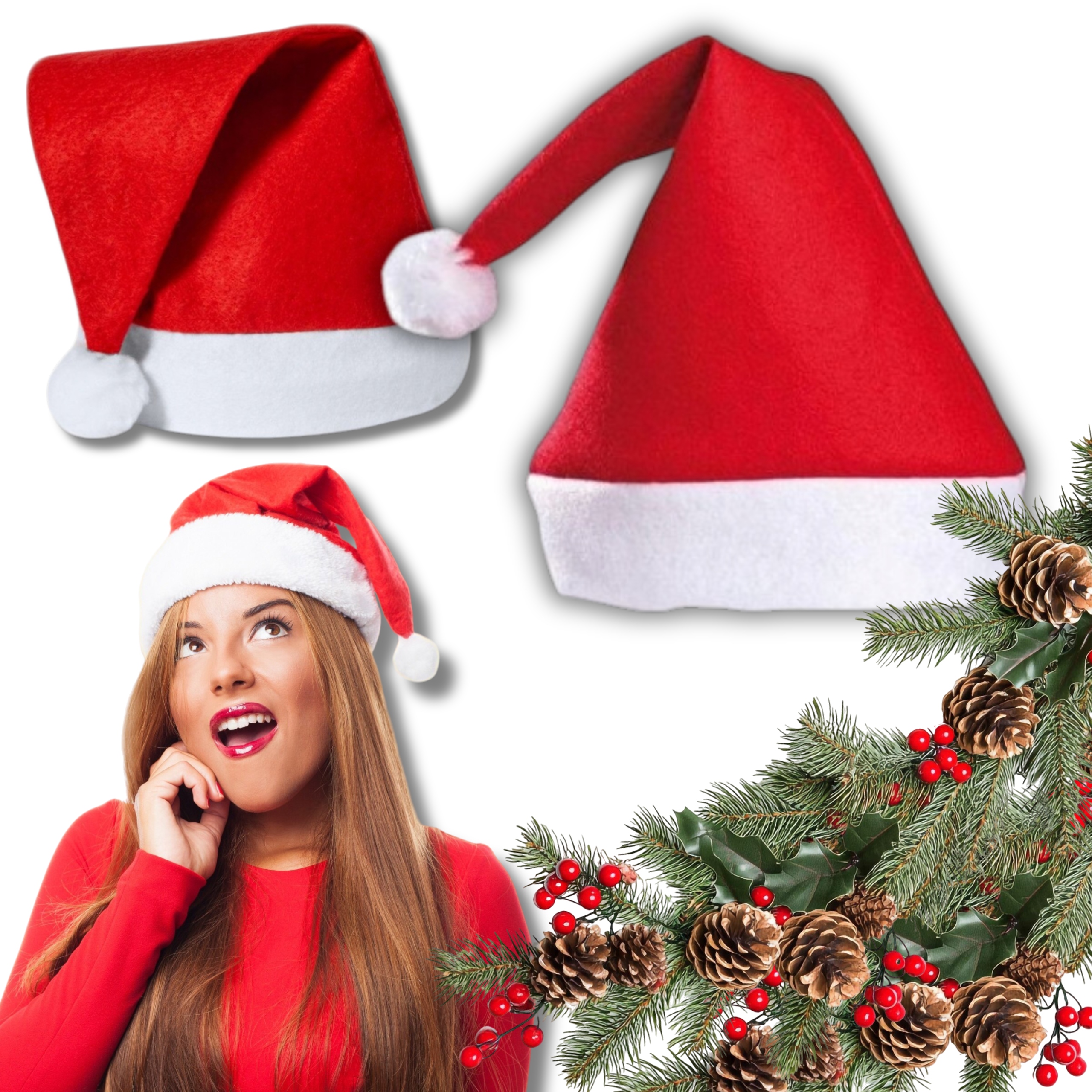 капелюх Санта , і це нерозлучний елемент різдвяних подій та урочистостей, проведених як у сімейному колі, так і серед друзів. Це також весело для багатьох маленьких дітей! Наш капелюх допоможе вам створити унікальну атмосферу доброти в ці спеціальні грудневі дні.