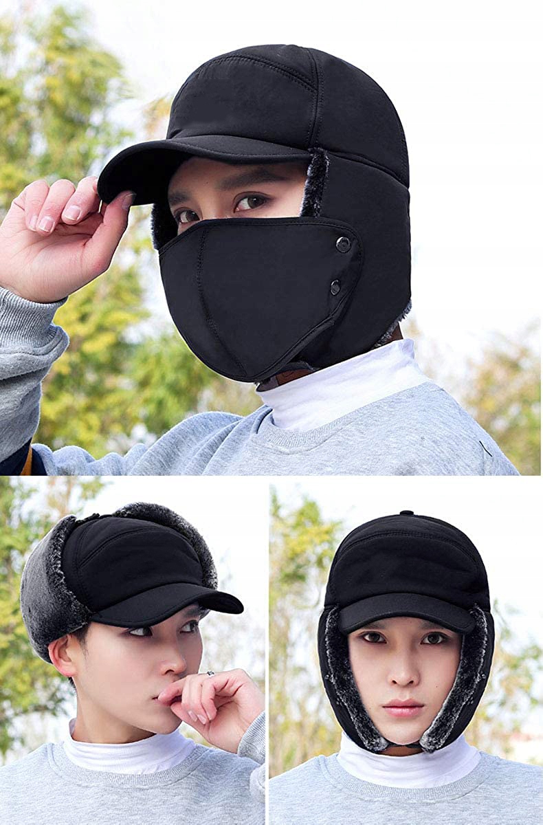 🧢Вітрозахисна шапка-ушанка для холодної погоди: унікальний дизайн зі знімною маскою для обличчя, вушними клапанами вгору та вниз, регульованим ремінцем для підборіддя, який наближає боки до обличчя для теплішої посадки. Такий простий у використанні та зігріває ваше обличчя та вуха взимку, а також захищає від сильного вітру та холоду.