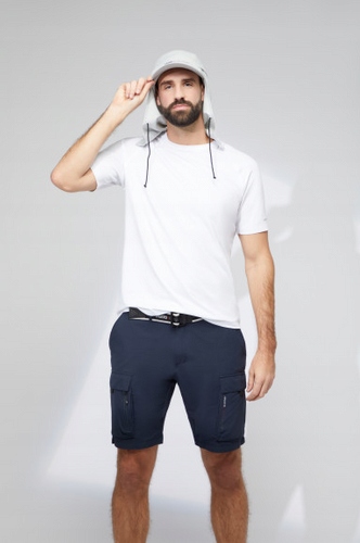 MUSTO EVOLUTION FAST DRY SUN CAP - головний убір, призначений для забезпечення теплового комфорту та зручності як під час перебування на сонці, так і в разі бризки води. Швидкосихаючий поліефірний матеріал був просочений DWR, завдяки чому вода стікає і не вбирається матеріалом. Цей капелюх також має захист від UV40+. Додатковий захист забезпечує складаний щиток для шиї, який можна згорнути в особливо сонячні дні, щоб забезпечити максимальний захист протягом довгих годин під шкідливими променями.