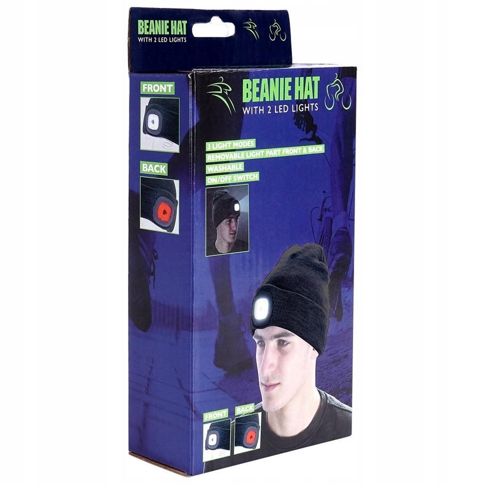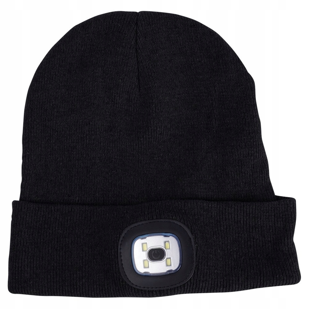 ✅ ТЕПЛИЙ - чорна кепка у стилі біні з двома світлодіодними лампочками, розташованими спереду та ззаду. Розмір шапки 20 х 21 см.