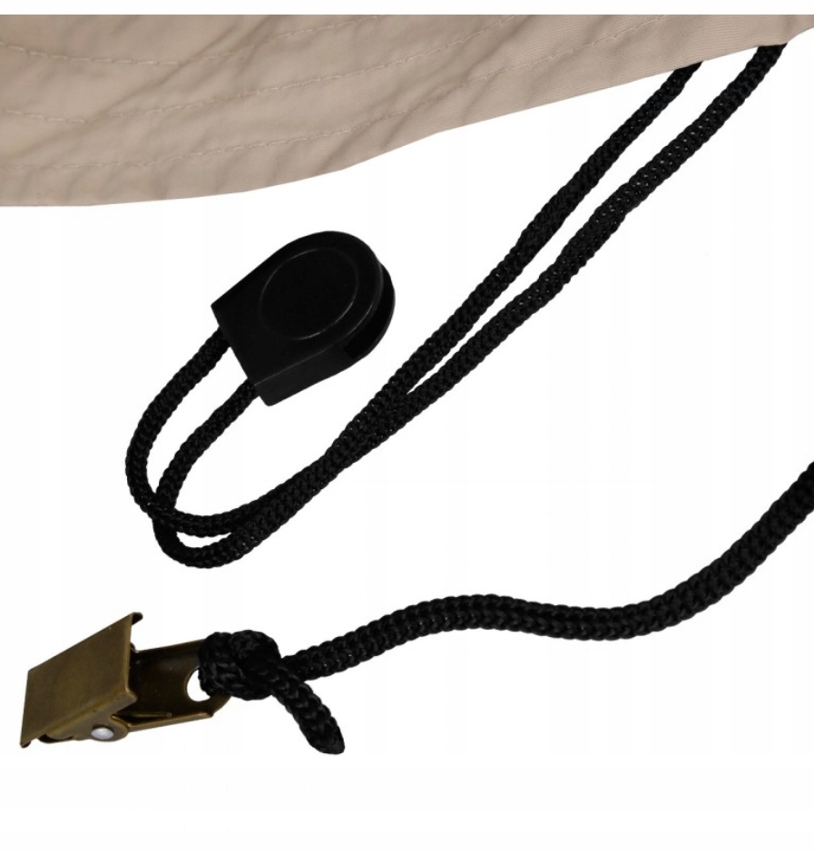 - string with a clip attached to the clothes protects the hat from losing during a strong wind