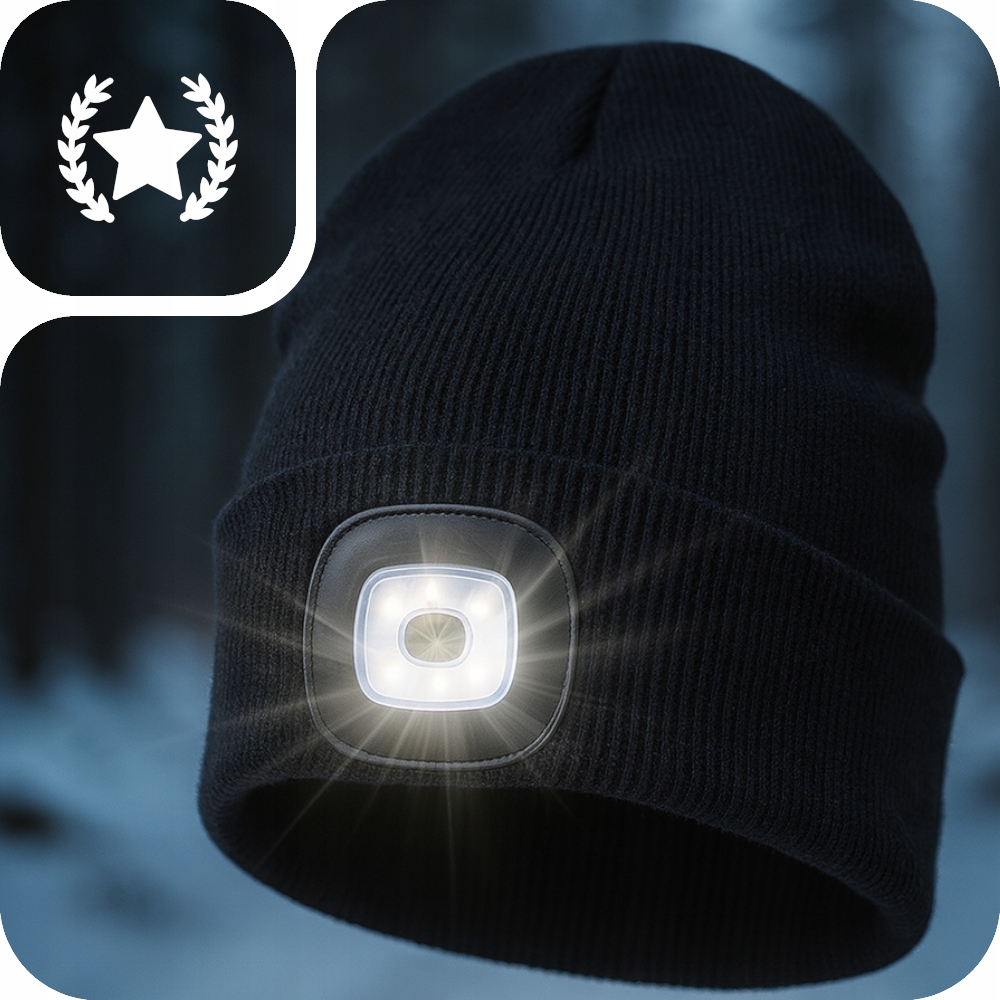 ЗИМОВА світлодіодна шапка з USB-ліхтариком, ІЗОЛЬОВАНА, чорна ТЕПЛА