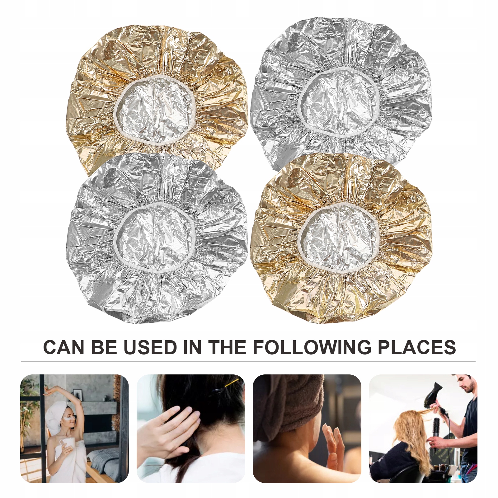 ✅Ці шапки з алюмінієвої фольги ідеально підходять для фарбування, хімічної завивки, мелірування, кондиціонування, крем-масажу, також підходять як шапочка для душу, ідеально підходять для салонів краси, перукарень, жінок макіяж, засіб для зняття макіяжу, будинок, спа, готель і перукарня використання.