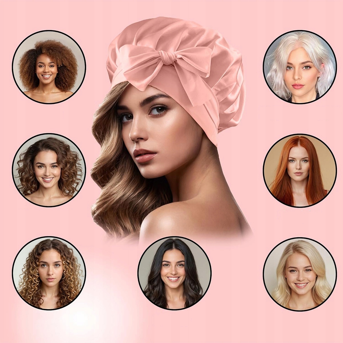 Атласна шапка для сну, РОЖЕВЕ змащення волосся, запобігає завиванню