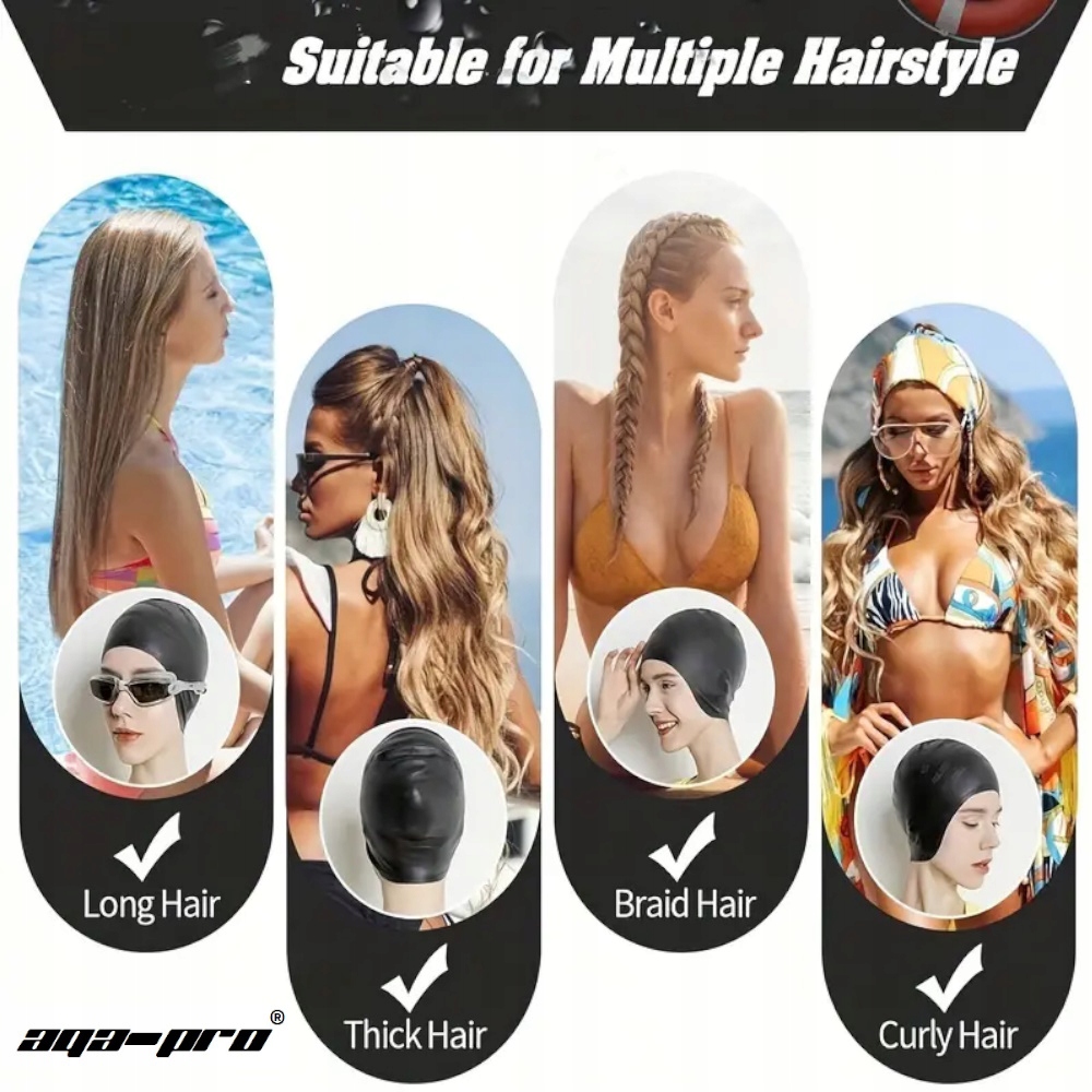 - Збільшена камера вміщає довге волосся без сильного натягування шапочки.