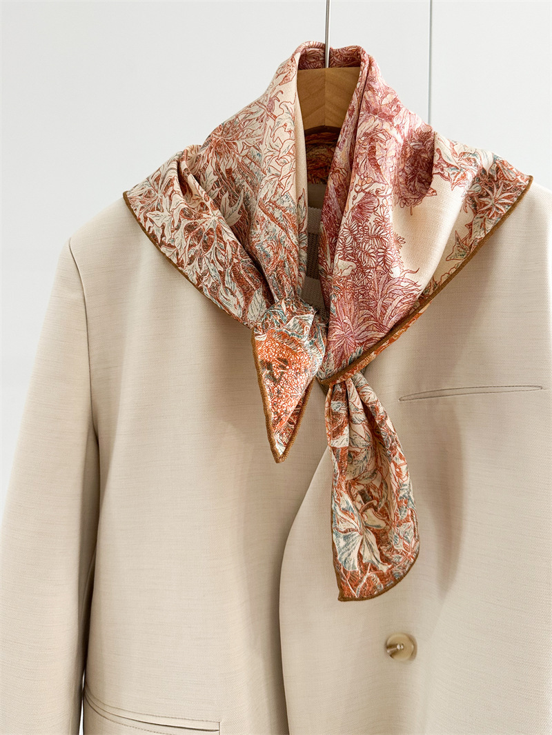 * **Майстерність ремісників:** кожен шарф має ретельно закручений край, що є символом розкішних аксесуарів. Цей делікатний, оброблений вручну край забезпечує бездоганну, елегантну драпірування та найвищу якість.