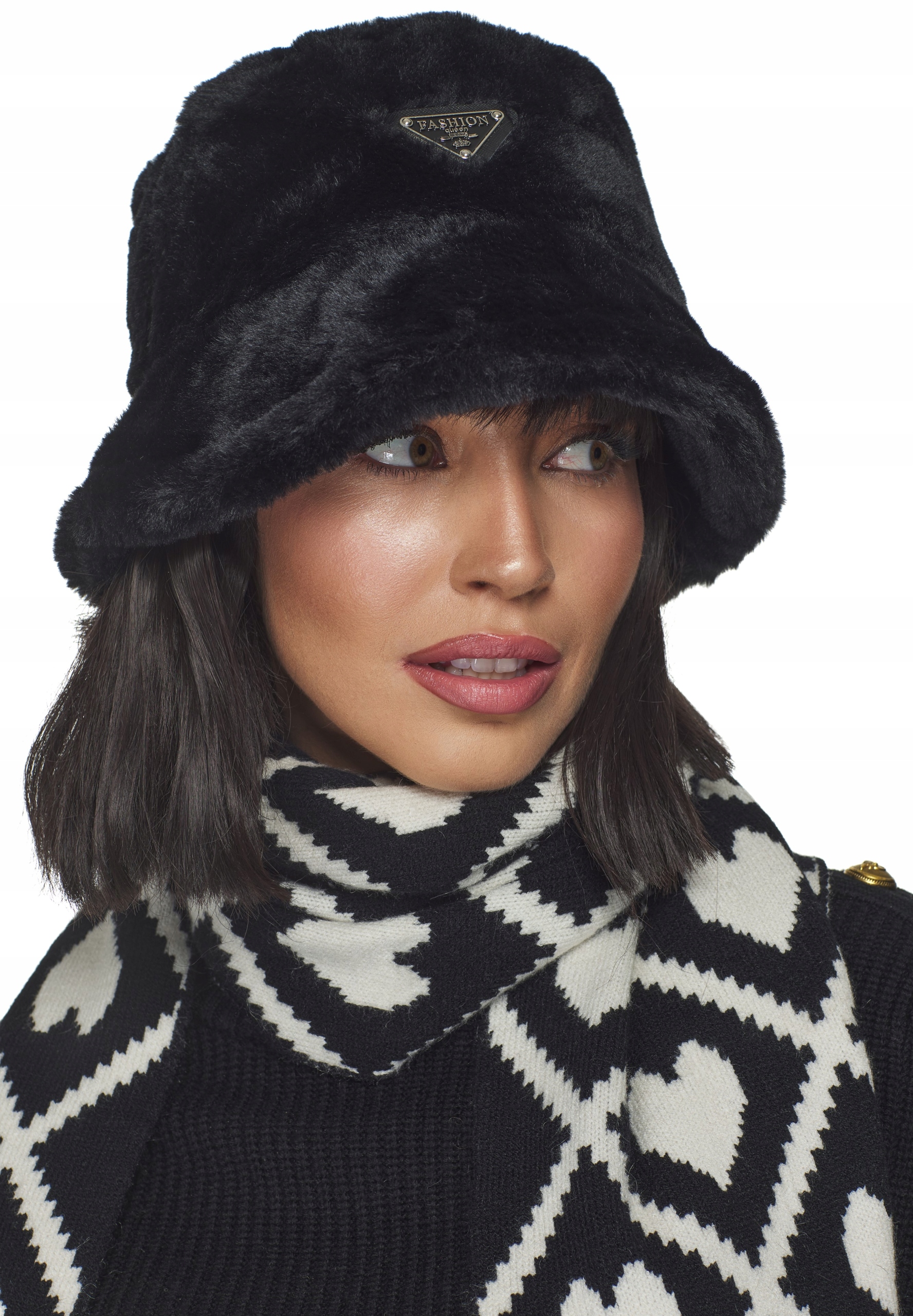 ШАРФ ЖІНОЧИЙ ЗИМОВИЙ з помпонами двосторонній візерунок сердечко чорно-білий