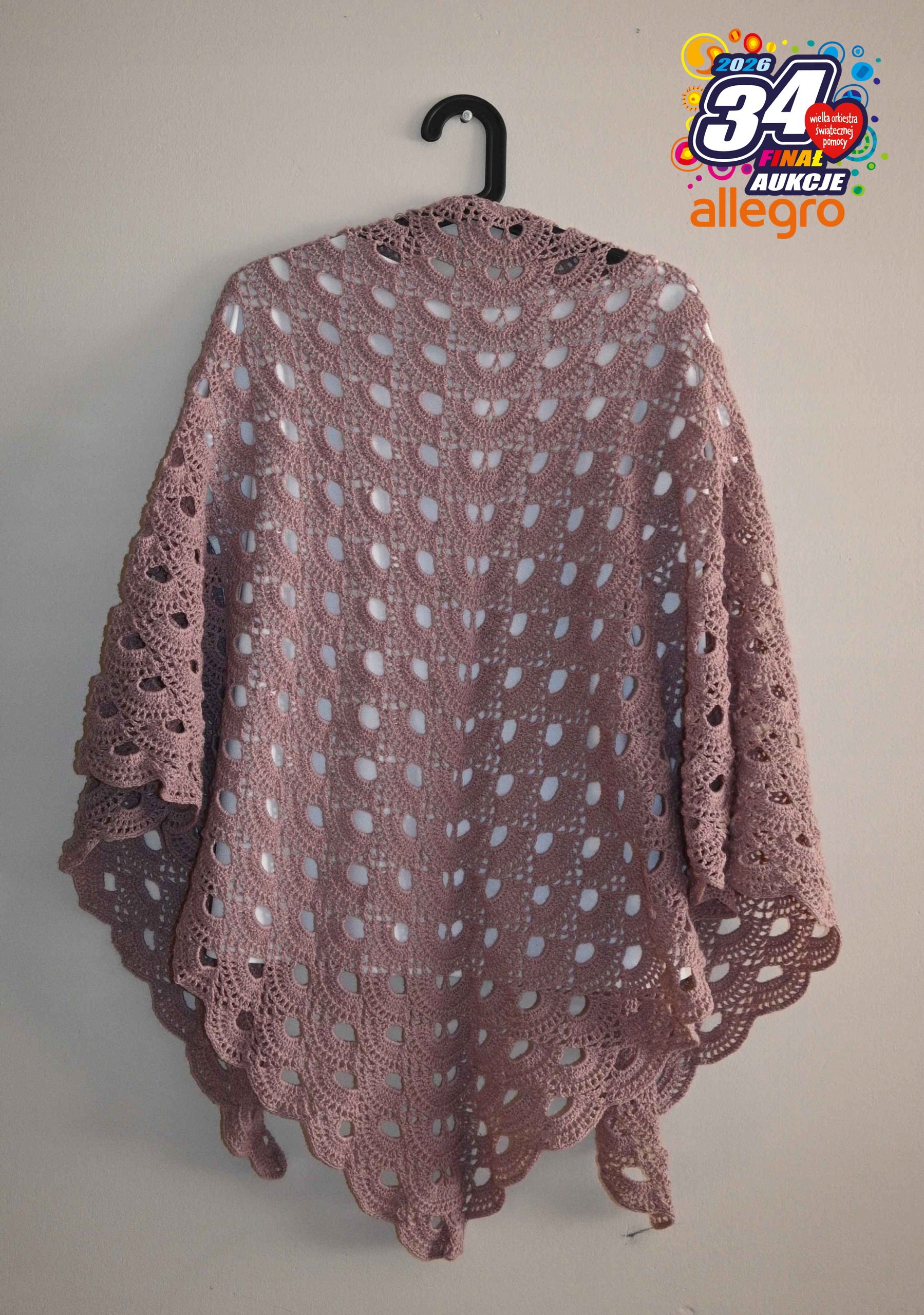 Предметом аукціону є шарф ручного в'язання з тонкої акрилової пряжі.