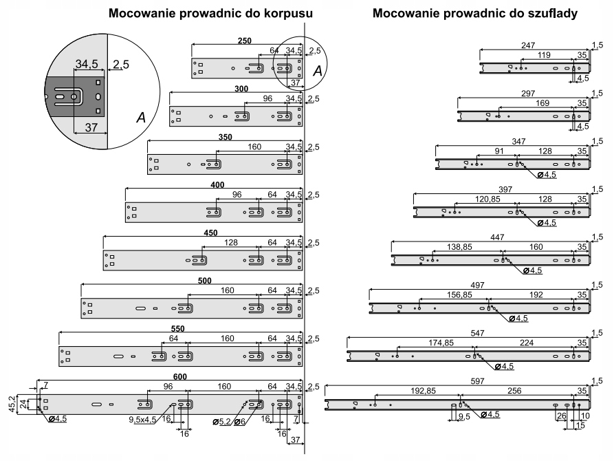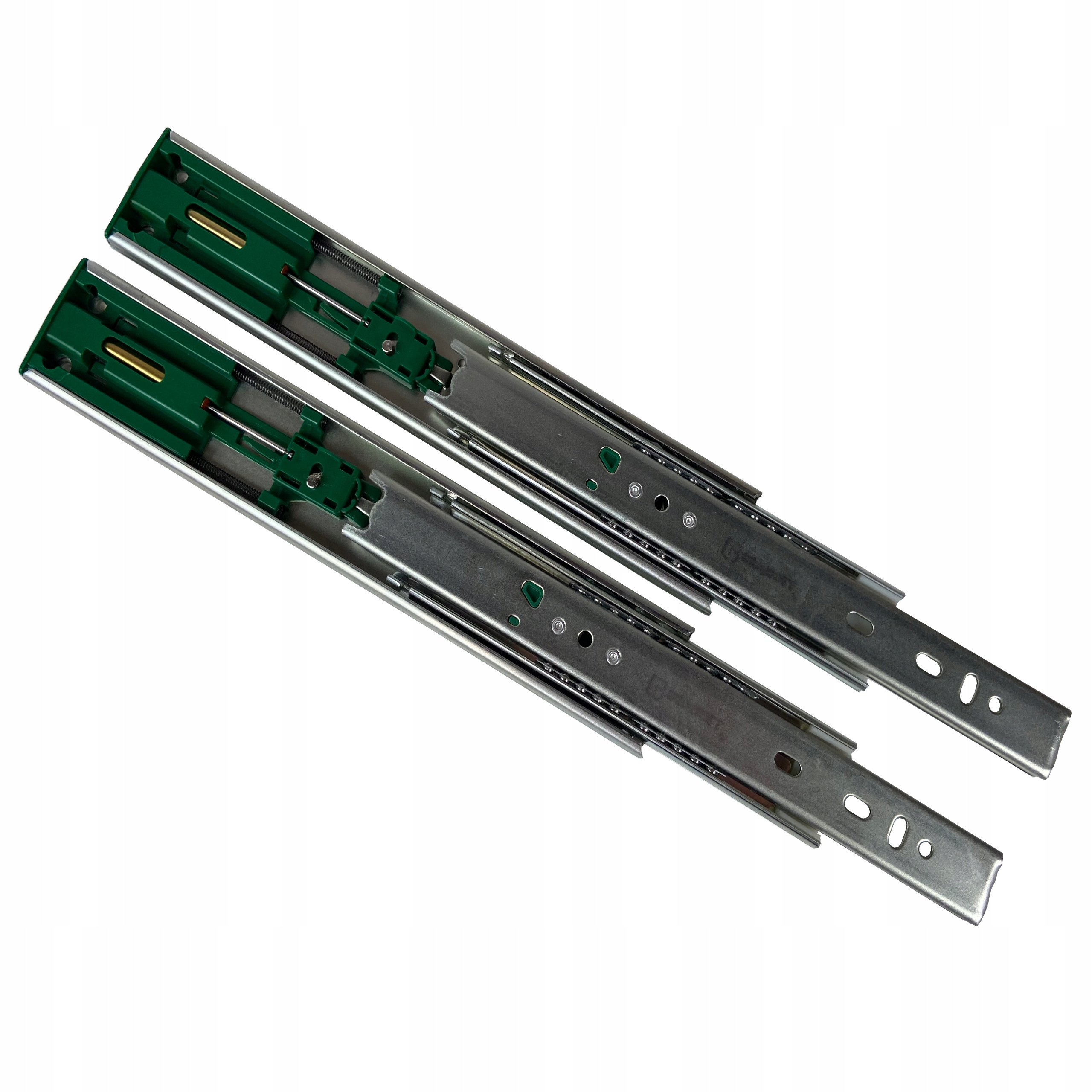 Сучасні та надійні напрямні Sevroll Кулькові напрямні повного висуву з системою плавного закривання – ще один інноваційний продукт від Sevroll. Тут використовується компактна конструкція висотою 45 мм зі збереженням високої несучої здатності. Конструкція виготовлена з металу, стійкого до деформацій. Система плавного закривання реалізована механізмом з подвійною пружиною і латунним циліндром амортизатора. Напрямна має 5 опорних сегментів, в кожному з яких по 5 кульок. Широкий діапазон довжини напрямних (250-600 мм) робить їх чудовим вибором для кухонних та офісних меблів, дозволяючи створювати місткі та міцні ящики.