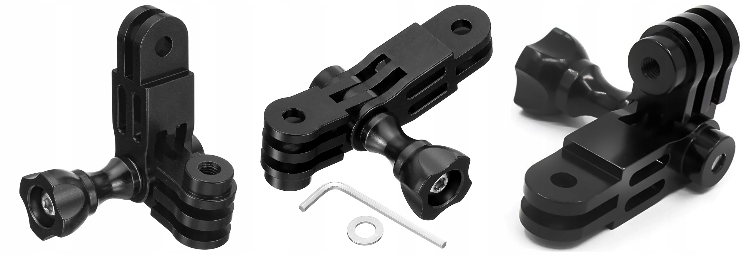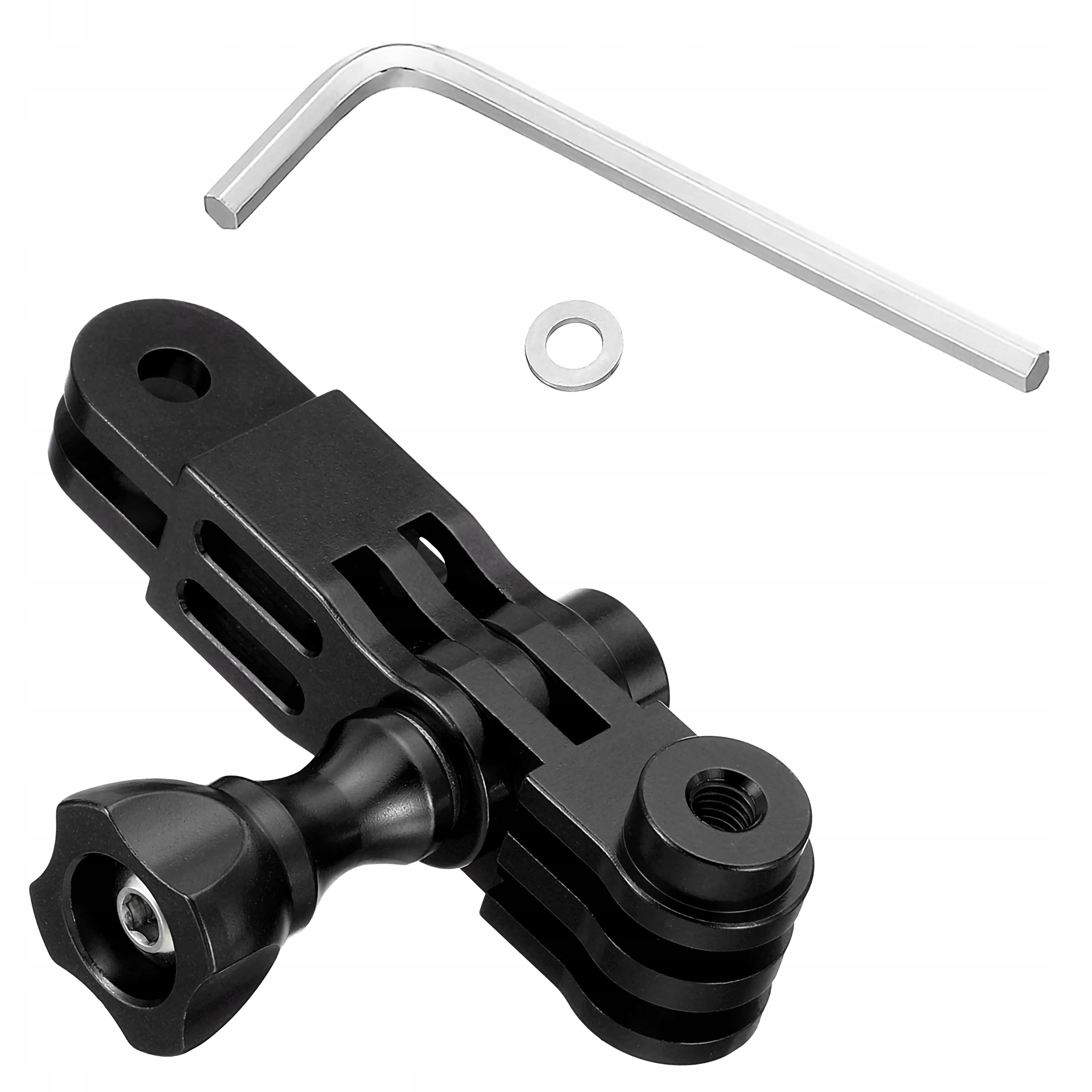 3D-шарнірний адаптер із системним кріпленням типу GoPro складається з двох рук різної довжини.