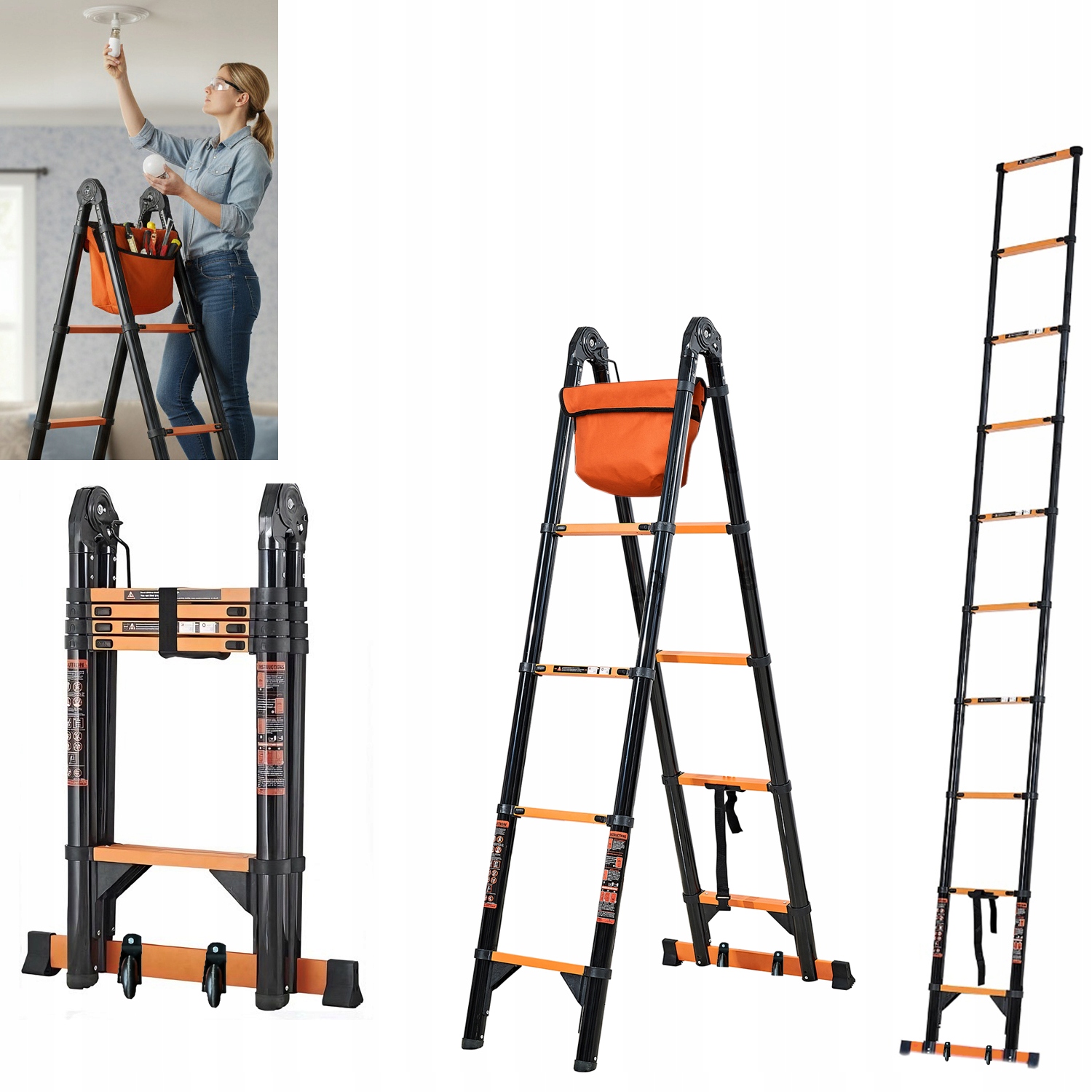 ШАРНІРНА ТЕЛЕСКОПІЧНА ДРАБИНА 4,2 М СКЛАДНА РАМА Вуглецева сталь з колесами