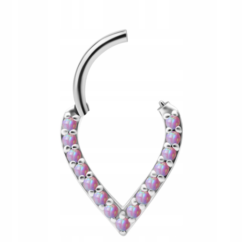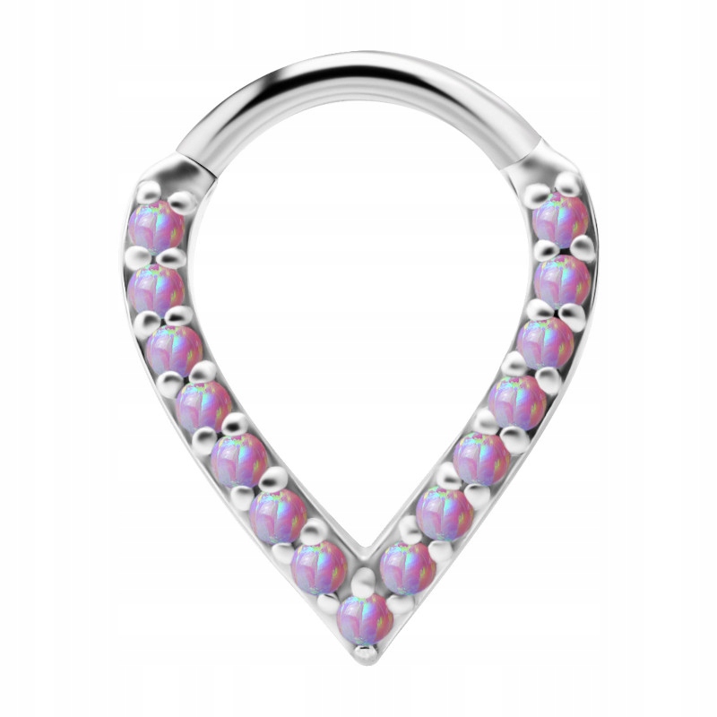 Обруч грушоподібної форми, закривається фрагментом стрижня, закріпленого на шарнірі, виготовленого з безнікелевого кобальто-хромового сплаву. Сережка, прикрашена виготовленими в лабораторії опалами рожевого кольору, (насправді опали білі з рожевим кольором. Сережка використовується в основному навколо вуха.