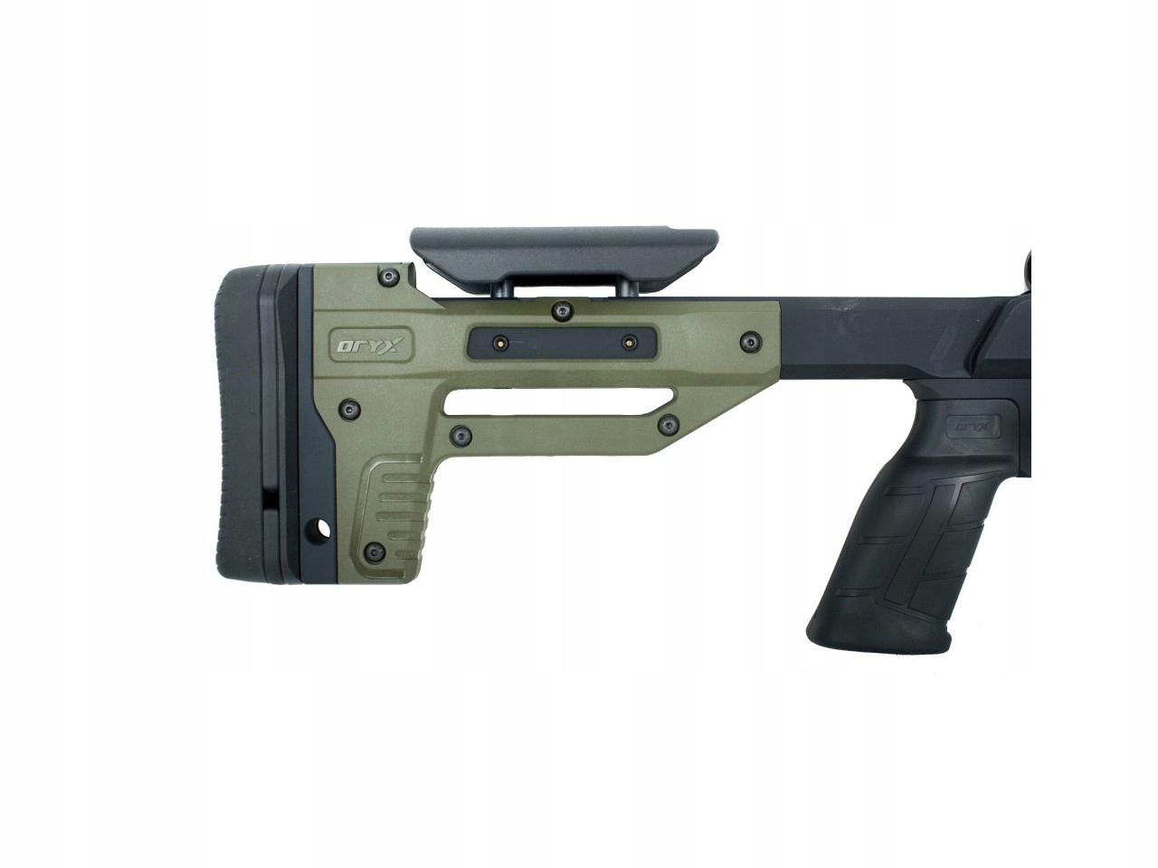Можливості регулювання параметрів прикладу включають плавне підвищення висоти щік - за допомогою двох гвинтів і зміну довжини за допомогою розпірних вставок. Кожна вставка має діаметр 0,25 дюйма або 6,35 мм.