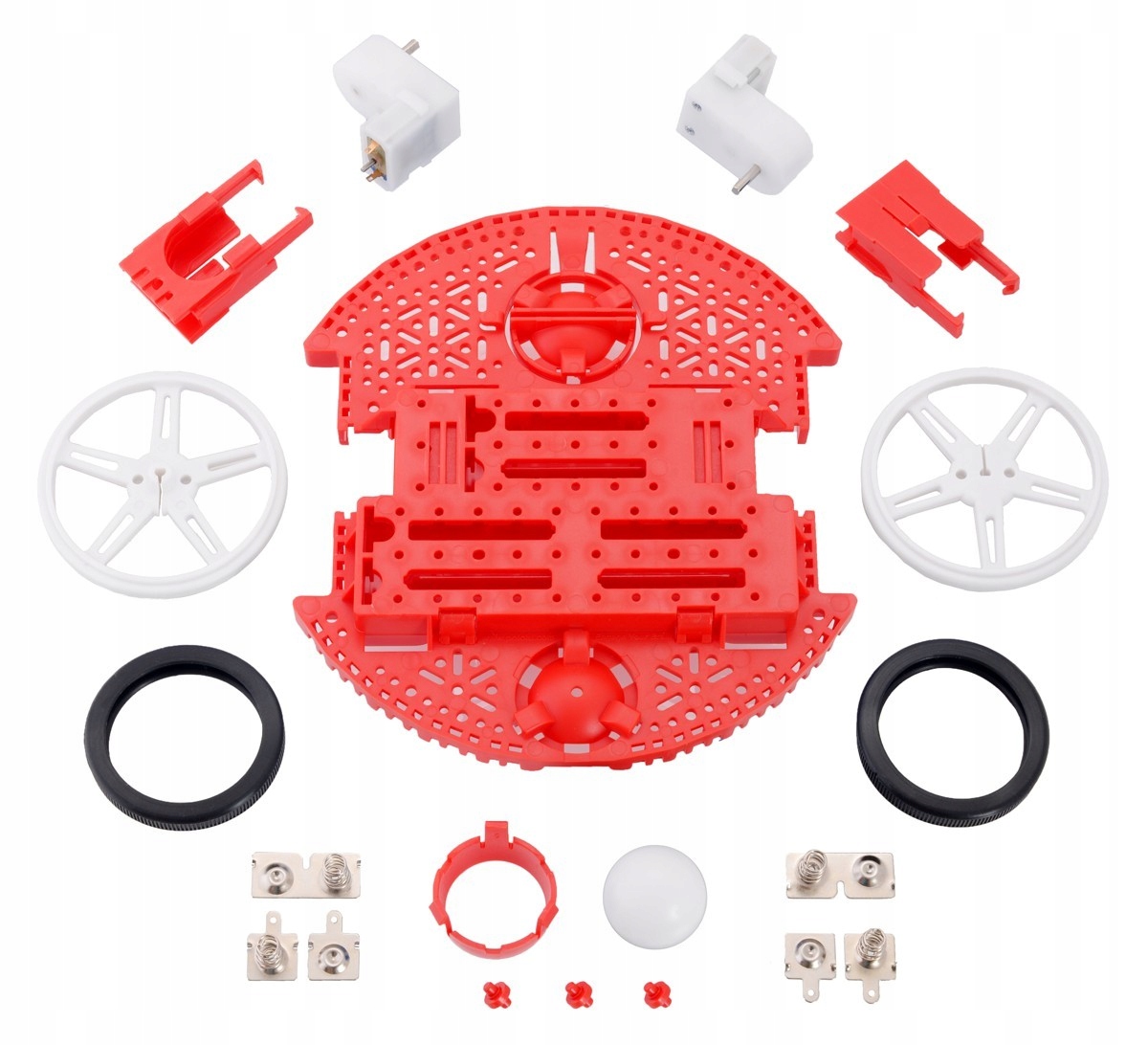 Шасі шасі Ромі призначене для людей, які планують побудувати невеликий мобільний робот. Комплект включає всі необхідні механічні елементи, необхідні для цього типу структури. Ми знаходимо тут два двигуни постійного струму з депозитом 120: 1 з колесами 70 х 8 мм. Основа має контейнер для 6 батарейних батарей, які можна використовувати для живлення нашого робота. У шасі також є багато отворів, які полегшують кріплення додаткових електронних модулів або датчиків. Знизу ви можете встановити опорний м'яч, який забезпечить стабільність шасі (лише один куля підтримуюється з кріпленням в наборі).