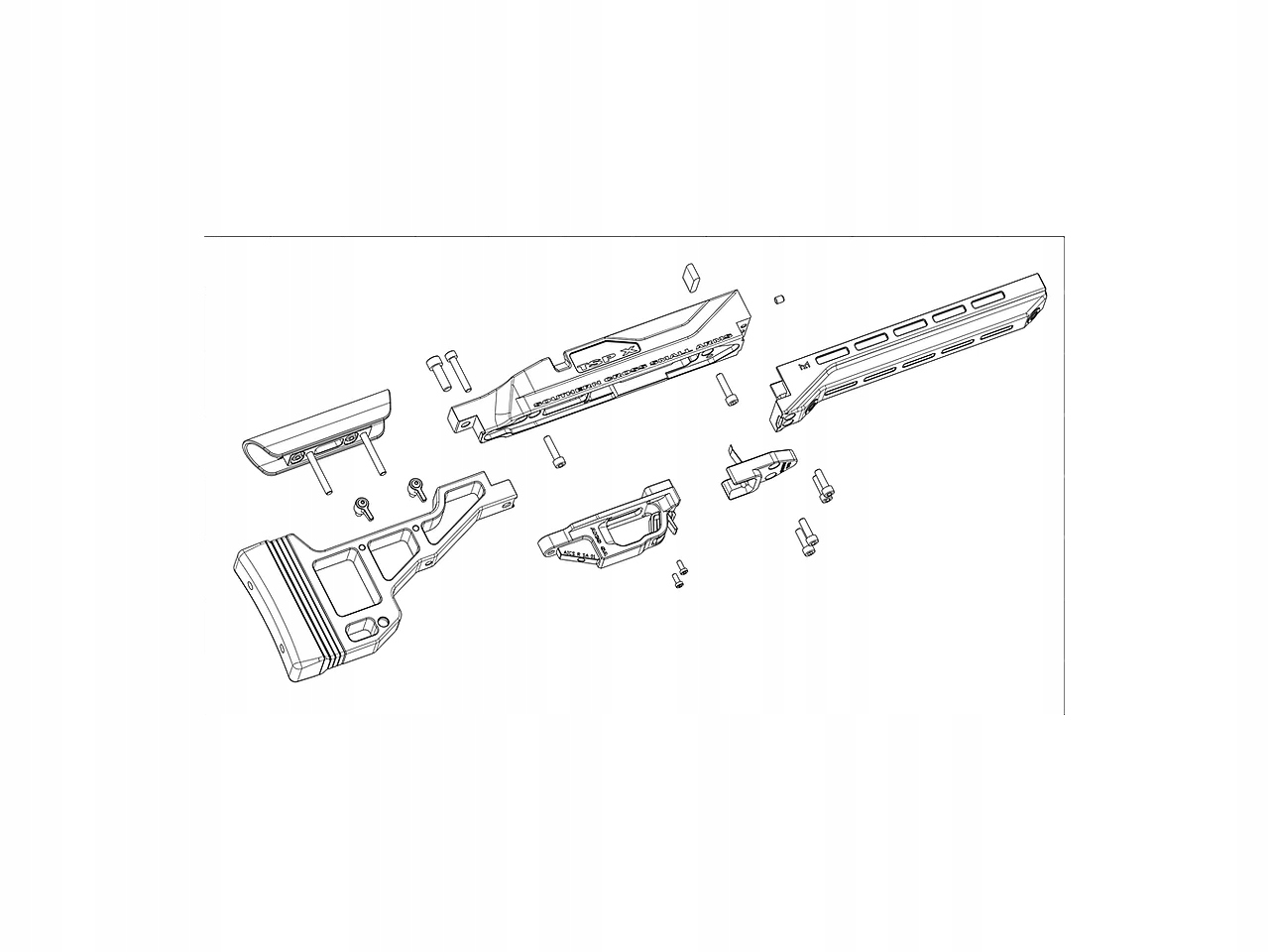 TSP — це абревіатура від Tactical Shooting Platform. Ложа надходить з Австралії від SCSA - Southern Cross Small Arms і виготовлена з дюралюмінію 6061 T-6 (з використанням верстатів з ЧПК) і пластику. Характерною особливістю є можливість швидкого монтажу приклада (після придбання відповідного адаптера). Це зменшує габарити та полегшує транспортування. Пістолетна рукоятка в стилі AR полегшує утримання зброї. У передній частині розетки M - LOK.